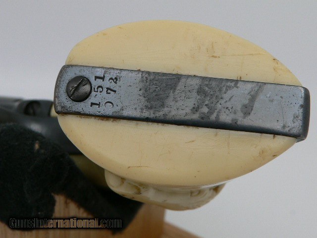 Description: ------------------Sold-------------Colt Single Action Army 38 Special 5 ½” Barrel, this is a Re-blue gun, Manufactured in Hartford Connecticut in 1892 this gun has been re-barrel with a second generation barrel and cylinder it has colt one line barrel address and on the right side of the barrel is colt single action Army 38 special roll on the frame is two line patent address with horse in a circle all matching serial number. The screws are in excellent condition in excellent working condition comes with original two piece plastic longhorn steer head grips on both sides. The bore is good 9+ out of a 1 – 10 and 10 being the best. Serial number 151072 This is Antique ship right to your Door” PLEASE SEE PHOTOS FOR CONDTION This would make a great shooter Shipping is $50 SOLD Antique: Yes Handgun Caliber: .38 Special Manufacturer: colt Model: SAA Barrel Length: 5 1/2 Finish: Re blued |
