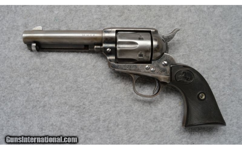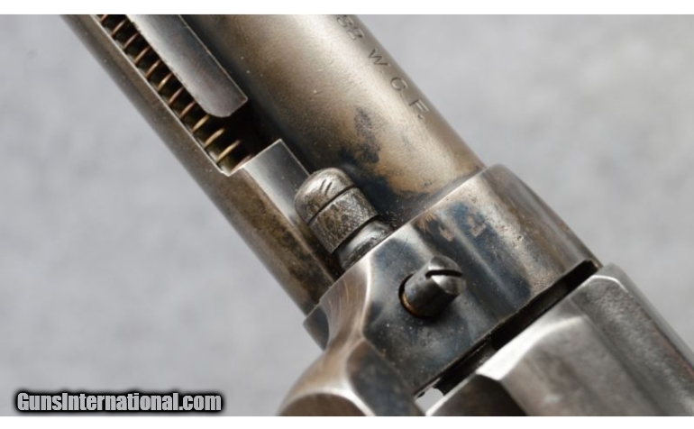 Description: SOLD Curio/Relic: Yes Manufacturer: 1904 Caliber Info: .32 WCF Metal Condition: Evidence of pitting on frame and cylinder. Much of the factory blue and case color has been worn off the metal surfaces with little case color remaining on the hammer and trigger. Bore Condition: Soem spots throughout the barrel exhibit pitting Barrels: 4 3/4" with 2 line barrel address Triggers: Single action Stock: Checkered hard rubber 2 piece grips Weight: 41 oz Sights: Grooved top strap with front blade sight Item Location: Fort Worth, TX |