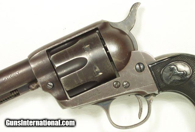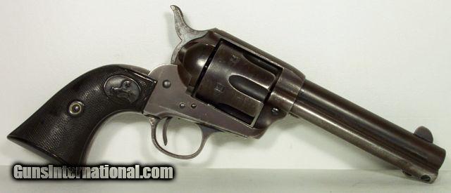 Description: Colt Single Action Army #207075; 41 cal.; 4 ¾” bbl.; letter to Simmons Hardware in 1901; metal is basic blue/brown patina with some original blue remaining; nice Hard Rubber Grips; crisp, PERFECT action and tight lock up; very strong bore with light frosting throughout; hammer is a later Colt replacement; antique by caliber and design; antique, no FFL/C&R required for shipping;All items shipped fully insured Priority Mail- -Hand guns $30 --Long guns $45; Spurs (Texas residents please add 6.75% sales tax); return policy: three days inspection from the date the item is received; full refund of shipping both ways ONLY IF THE ITEM IS MISREPRESENTED. Note: No International sales under any circumstances. Will ship C&R eligible items to C&R license. Antiques shipped without license to anyone EXCEPT New Jersey and City of New York where a FFL is required. SOLD Antique: Yes Manufacturer: CSAA Serial Number: 207075 |