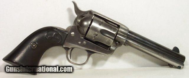 Description: Colt Single Action Army SN199765; cal. 41 Colt; shipped to Copper Queen in Bisbee, Arizona Territory in 1900; 4 ¾” bbl.; blue finish; with holster rig; money belt marked E. Frakenpohl; Nogales, Az.; nice original gun with lots of original metal finish; nice ORIGINAL Hard Rubber Grips; PERFECT action; GREAT shiny bore with light even frosting; all original matching 118 year old Western shipped Colt with a real Arizona Holster Rig; antique by caliber and design; antique, no FFL/C&R required for shipping; from my own personal collection; Long guns shipped by FedEx in a hard case $65; all other items shipped fully insured Priority Mail; - -Hand guns $30 -- Spurs $30-- Knives, Swords & Sabers $30—Grips $20; return policy: three days inspection from the date the item is received; full refund of shipping both ways ONLY IF THE ITEM IS MISREPRESENTED SOLD Antique: Yes Manufacturer: Colt Model: Copper Queen Serial Number: 199765 |