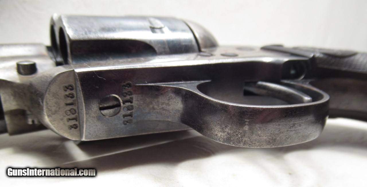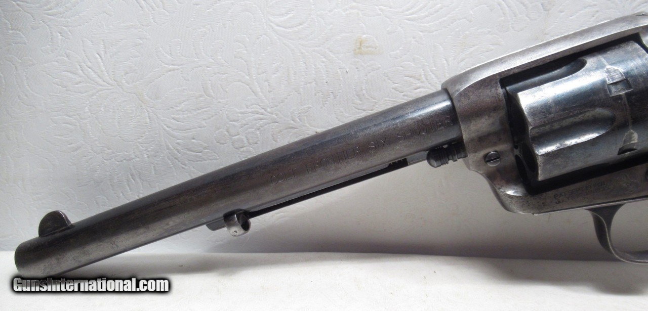 Colt Single Action Army Revolver; Serial No. 318133; 44/40 Caliber Roll Die “COLT FRONTIER SIX SHOOTER” with 7 ½” Barrel; Lots of Original Metal Finish Present; Great Original Colt Hard Rubber Grips; PERFECT ACTION; Very Strong Bore with only light even chattering/frosting; Perfect Original Screws; Full Front Sight; Note!: Colt Records Show this to be a 38/40 Caliber – Shipped to Simmons Hardware in 1911 – Records are Incorrect as this is and has Always Been a 44/40; See All Photos of this Really Good 114 Year-Old Colt 44/40 Frontier Six Shooter; See All Photos for Condition; No Texts; Call (254)541-5765 or Email Only; PERSONAL PROPERTY of Harold Wieser; NOTICE: We Do Not Do Any Consignments - All Items Listed are Owned by Us - NO SALES to New Jersey or New York City - Antiques Only to Massachusetts and California; NOTE: All Modern Firearms Must Go to FFL Dealer who will Accept From Individual with Texas Driver License; Price: $5,975 + $50 S&H Via USPS Priority Mail; Payment Address: Harold Wieser - 1466 U.S. Hwy 77 - Rosebud, TX 76570; SEND PAYMENTS VIA USPS PRIORITY MAIL; BEWARE of SCAMS!!! - DO NOT SEND MONEY or CORRESPONDENTS ELECTRONICALLY UNLESS YOU HAVE SPOKEN to HAROLD WIESER FIRST! (254)541-5765singl