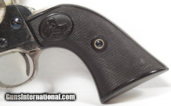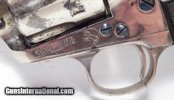 Description: Colt Single Action Army SN189417 ‘COLT FRONTIER SIX SHOOTER’ Roll Die (44-40); made 1899; 4 -3/4 inch bbl.; nickel finish; Colt has no record of this revolver, but SN189418 is listed in Colt records in same configuration shipped to Simmons Hardware in 1899; most of original nickel present; GREAT Colt Hard Rubber Grips; PERFECT action and EXCELLENT strong bore with some light chattering; really nice 119 year old Colt with all matching numbers; FFL/C&R required for shipping; from my own personal collection; Long guns shipped by FedEx in a hard case $65; all other items shipped fully insured Priority Mail; - -Hand guns $30 -- Spurs $30-- Knives, Swords & Sabers $30—Grips $20 – Scopes $10; return policy: three days inspection from the date the item is received; full refund of shipping both ways ONLY IF THE ITEM IS MISREPRESENTED. SOLD Curio/Relic: Yes Manufacturer: Colt Model: SAA Serial Number: 189417 |