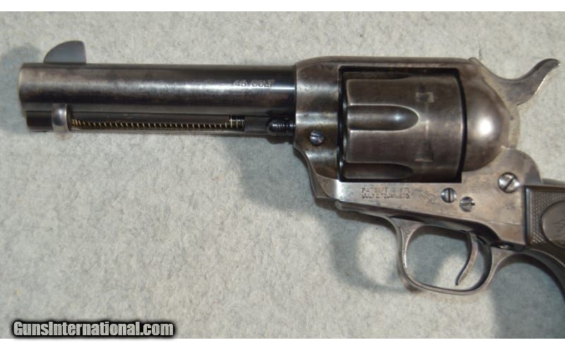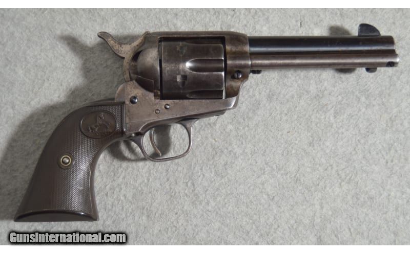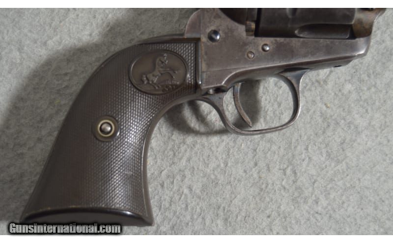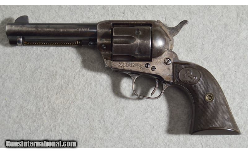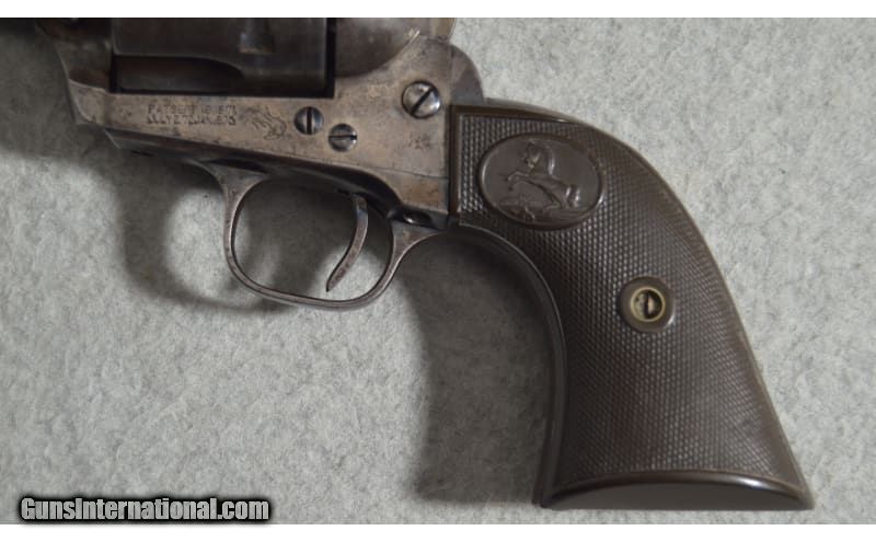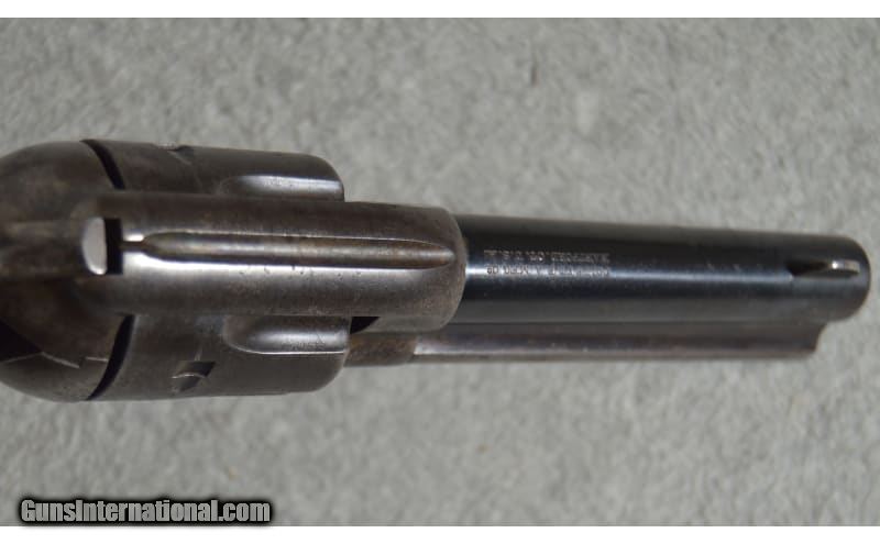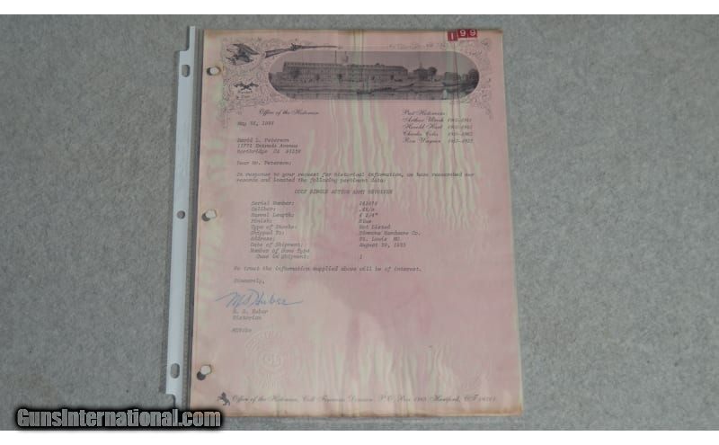 Description: Colt Single Action Army chambered in .45 Colt. The serial number 343479 indicates that the revolver was produced in 1922. Featuring a 4-3/4 inch barrel with 2 line inscription and blued finish. The included factory letter confirms the finish and shipment to Simmons Hardware Co. in Saint Louis, Missouri on 29 August 1922. .45 Colt SOLD Curio/Relic: Yes Metal Condition: Very Good with Minor Handling Marks Wood Condition: Very Good with Minor Wear Bore Condition: Bright and Clear with Good Rifling Barrels: 4.75 inch Triggers: Single Action Weight: 2 lb 6 oz Item Location: Fort Worth, TX |