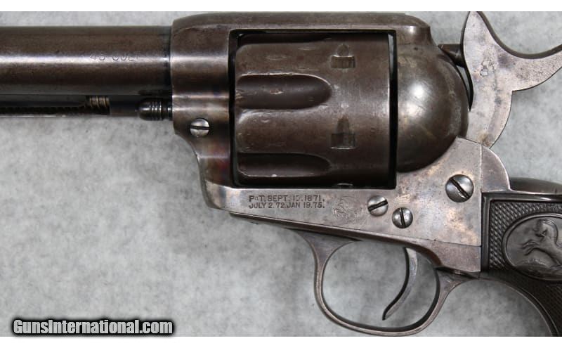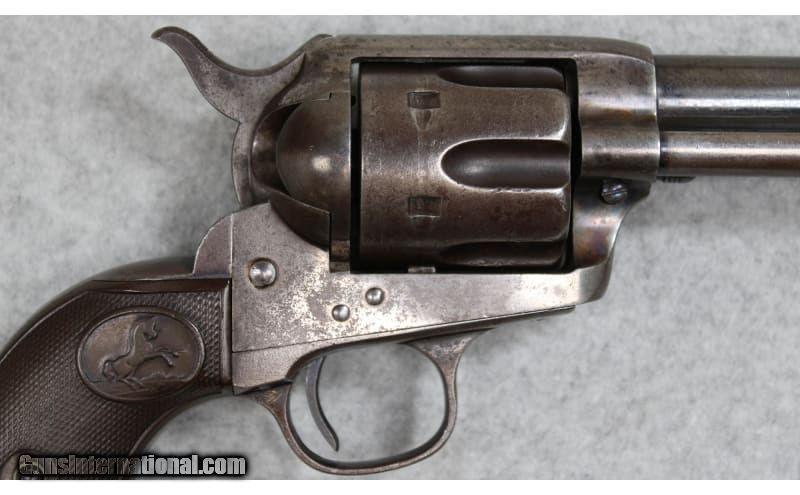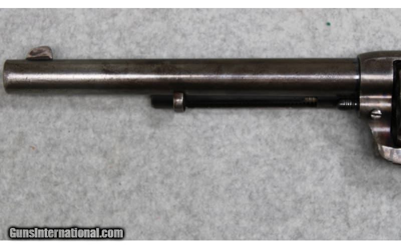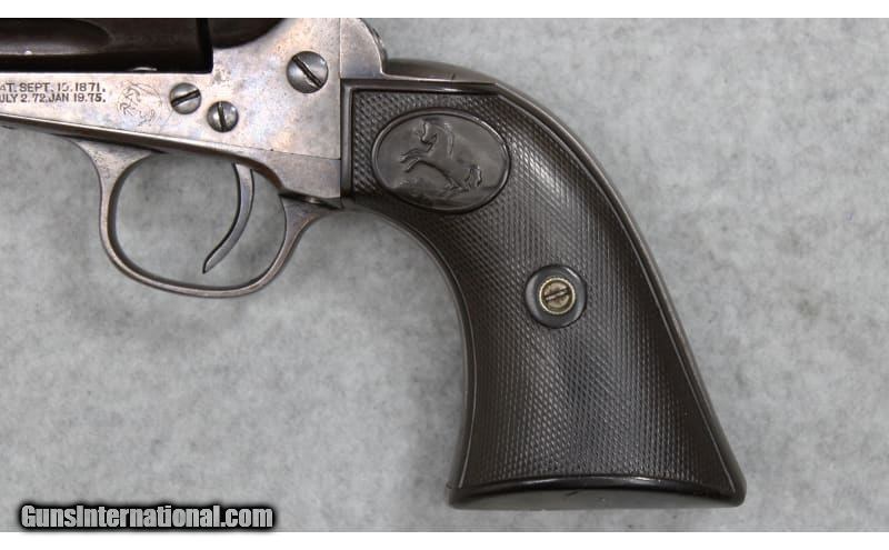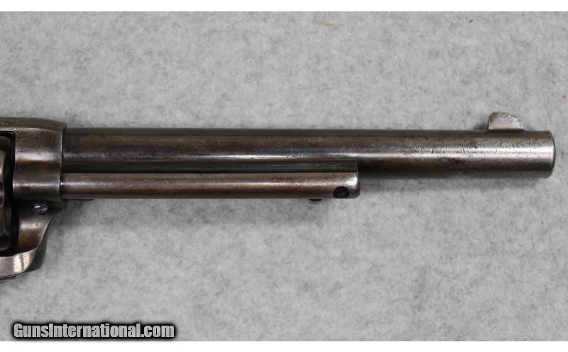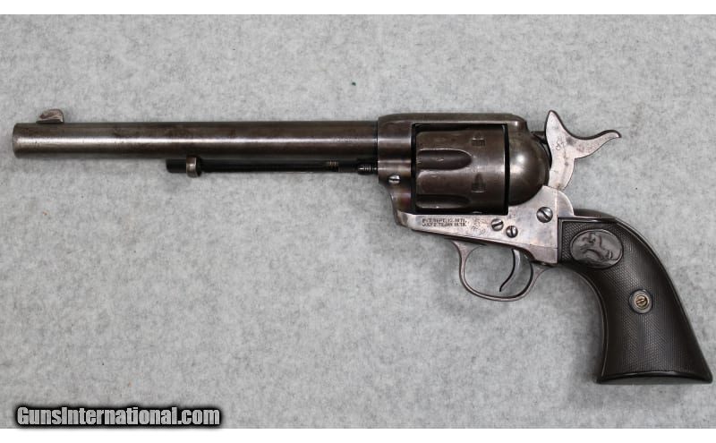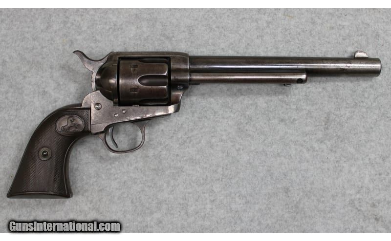Description: Colt Single Action Army chambered in .45 Colt. The serial number (164857) dates the revolver to 1896. Features include a 7-1/2 inch barrel and Colt factory hard rubber grips. .45 Colt SOLD Antique: Yes Metal Condition: Good with Handling Marks and Scratches Wood Condition: Good with Handling Marks and Wear Bore Condition: Clear with Good Rifling Barrels: 7.5 inch Weight: 2 Lbs 6 Oz Item Location: Fort Worth, TX |