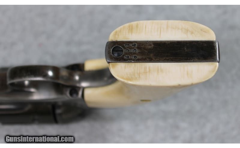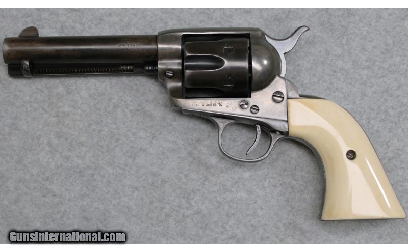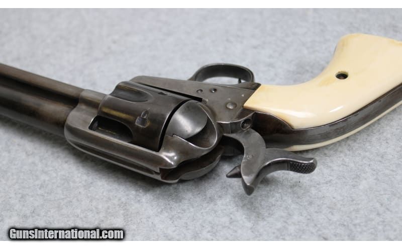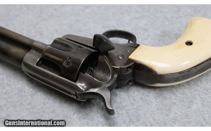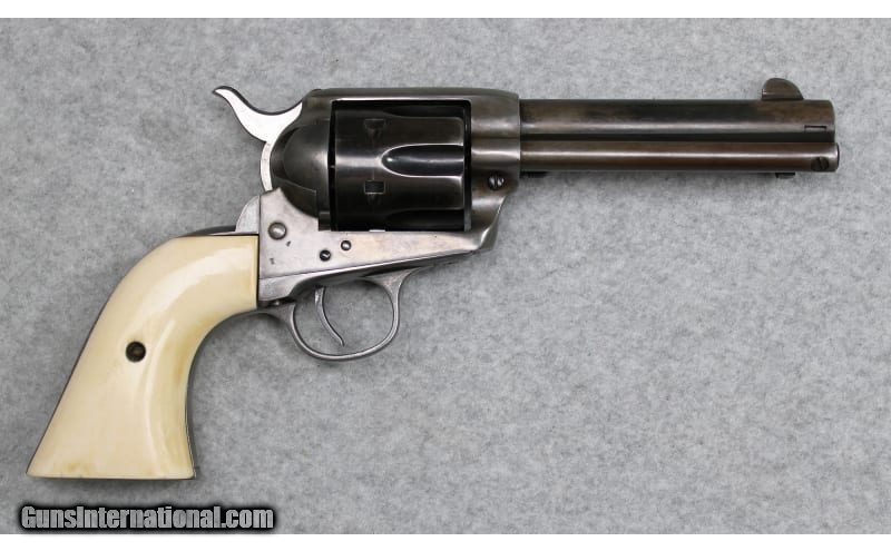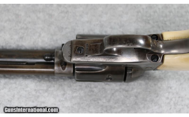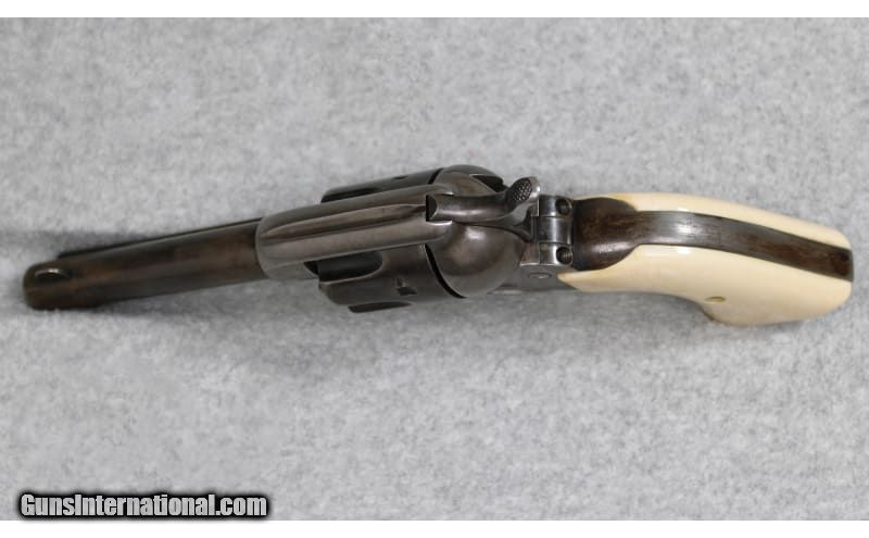 Description: Colt Single Action Army revolver chambered in .45 Colt. The serial number (207654) indicates that the revolver was manufactured in 1901. Features include a 4-3/4 inch blued barrel and color casehardened frame with smooth white grips. In overall very good condition, the revolver has wear as one would expect from a firearm of this age but appears to have had spot cold bluing applied at some point .45 Colt SOLD Metal Condition: Good with Handling Marks and Wear Wood Condition: Very Good with Minor Handling Marks and Some Discoloration Bore Condition: Clear with Light Pitting and Frosting Barrels: 4.75 inch Butt Pad: Smooth Weight: 2 lbs 3 oz Sights: Ftont Blade Item Location: Fort Worth, TX |