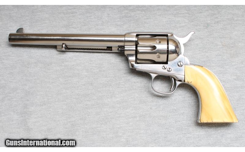 Description: Very good condition, some finish wear, nicks and scratches. Colt Single Action Army revolver - 7 1/2" barrel, fixed sights, single action trigger, 6 shot fluted cylinder and horn grips, manufactured in 1882, serial number 83811 . An excellent choice for Colt collectors. .45 Colt SOLD Antique: Yes Chambers: Revolver Metal Condition: Excellent Barrels: 7 1/2 Triggers: Single action Butt Pad: Horn grips Sights: "Fixed rear channel, blade front sights Item Location: La Vista, NE |