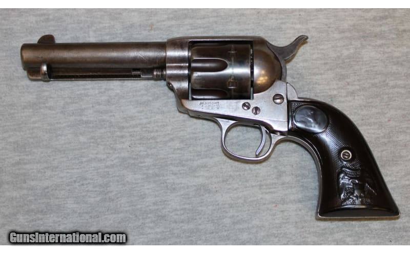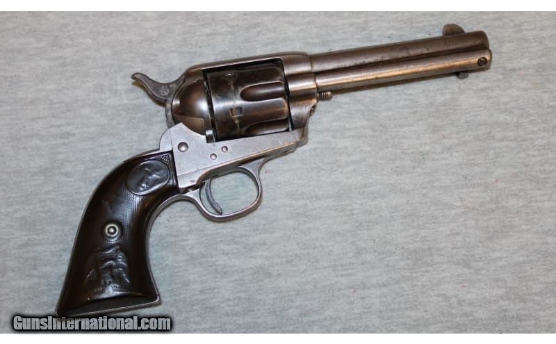 Description: Fair condition, finish wear, scratches, nicks over most metal. Classic Colt 1st Gen / BP Frame SAA revolver manufactured in 1890. The Colt Single Action Army (also known as the SAA, Model P, Peacemaker, or M1873) is a single-action revolver handgun. It was designed for the U.S. government service revolver trials of 1872 by Colt's Patent Firearms Manufacturing Company and was adopted as the standard issued pistol of the U.S. Army from 1873 until 1892. The Colt SAA has been offered in over 30 different calibers and various barrel lengths. Its overall appearance has remained consistent since 1873. Colt has cancelled its production twice, but brought it back due to popular demand. The revolver was dubbed the "Peacemaker", and is a famous piece of Americana and the American Wild West era. .45 Colt SOLD Antique: Yes Chambers: Revolver Metal Condition: Fair Barrels: 4 3/4 Triggers: Single action Butt Pad: Colt grips Sights: "Fixed rear channel, blade front sight Item Location: La Vista, NE |