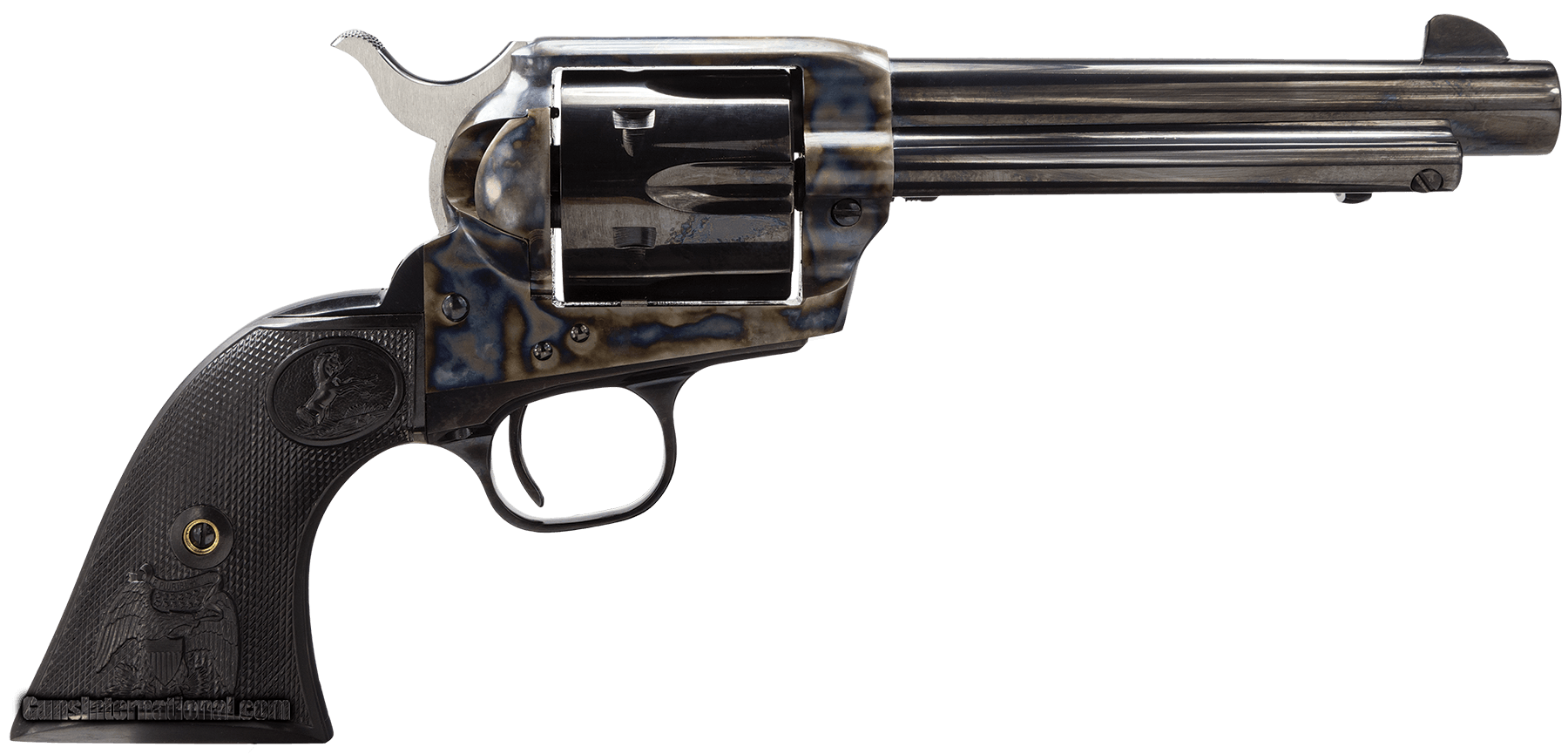 Description: Guns Listing ID: prod3775 The Colt Single Action Army is a family of single-action revolvers chambered in more than 30 different calibers. The standard U.S. military revolver from 1873-1892, the Single Action Army was used in the Mexican-American War, among others. The revolvers have either a 3\", 4.75\", 5.5”, or 7.5” barrel. “The Gun That Won the West” was also the preferred side arm of General George Patton throughout his career. ? Single-action revolver ? Spur hammer ? U.S. military trusted for two decades ? Chambered in more than 30 calibers SOLD Manufacturer: COLT Model: SINGLE ACTION ARMY Caliber Info: .45 COLT Condition: new Barrels: 4.75 BARREL Finish: BLUED |