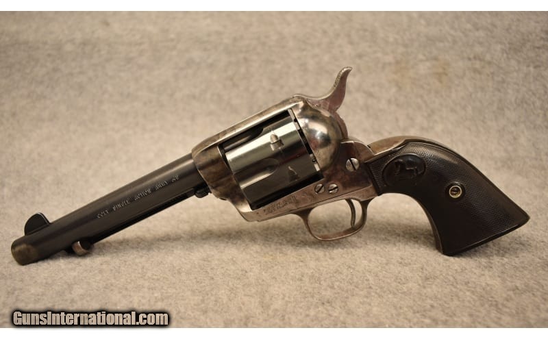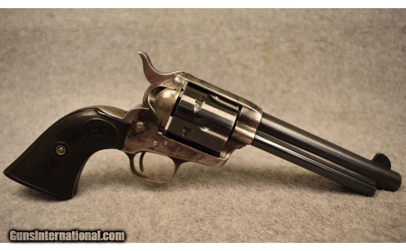 Description: This Colt Single Action Army .45 is in very good condition for its age. Manufactured in 1895 it appears to have had the barrel and cylinder replaced. Serial numbers match on the butt and frame SN 160377. Good looking gun. .45 Long Colt SOLD Antique: Yes Chambers: .45 with 6 round cylinder Metal Condition: Very Good Bore Condition: Very Good Barrels: 5 1/2 Weight: 3 Sights: Fixed Item Location: Kansas City, KS |