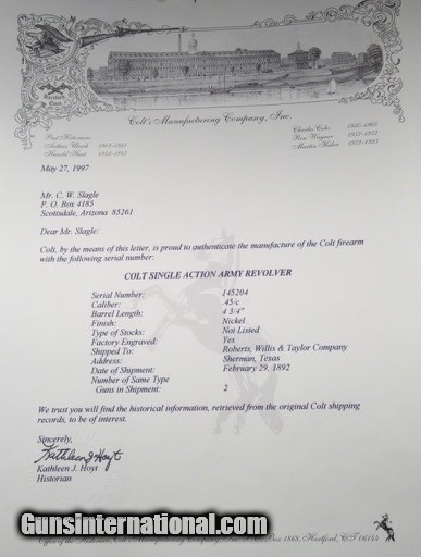 Colt Single Action Army 45 Texas shipped Factory Engraved 1892
