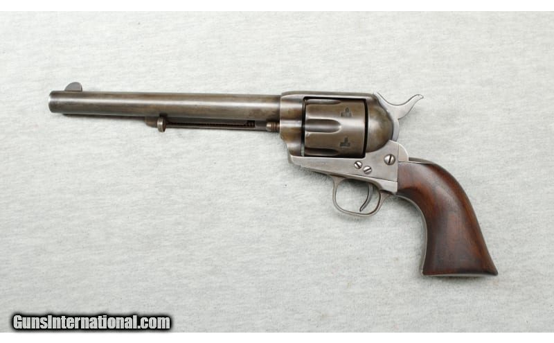 Description: Colt 1873 Single Action Army in .44 Rimfire. This Colt SAA was manufactured in 1874, and the serial number is 237. It is in very good condition. It retains significant blue finish on the barrel, hammer, trigger, and back strap. The walnut grips are in excellent condition. The top of the barrel is marked "Colt's PT. F. A. MFG. Co. Hartford CT. U.S.A". The patent stamp on the frame reads "PAT. Sept. 19, 1871, July 2, 72". It has a great bore with good rifling. This revolver is included in the Colt Peacemaker Encyclopedia/Vol 2. It has a Colt Factory letter. No box. .44 Rimfire SOLD Antique: Yes Metal Condition: Very good Wood Condition: Excellent Bore Condition: Bright Barrels: 7 1/2 Inches Triggers: Factory Weight: 2 lbs 6 oz Sights: Fixed Item Location: La Vista, NE |