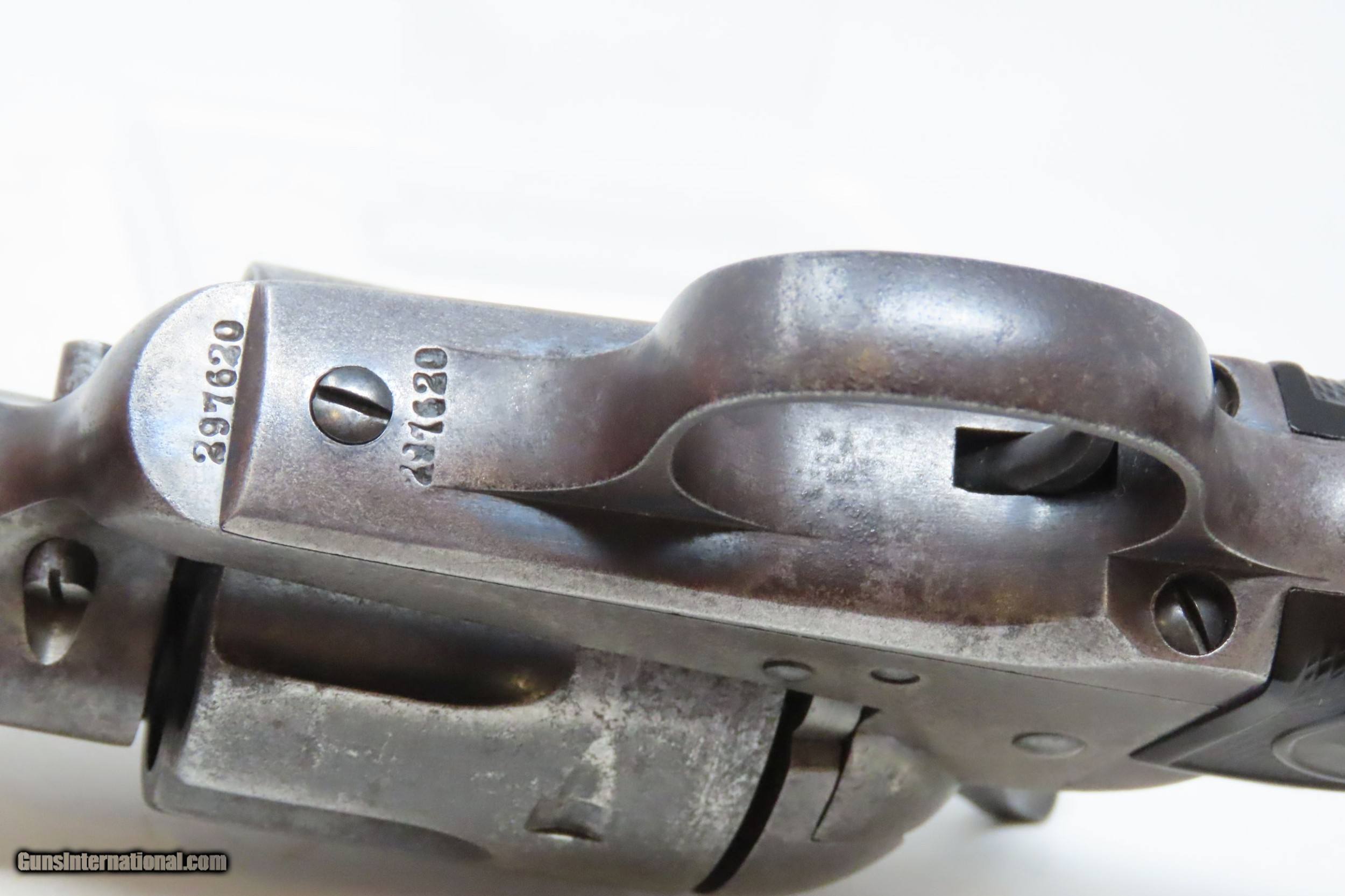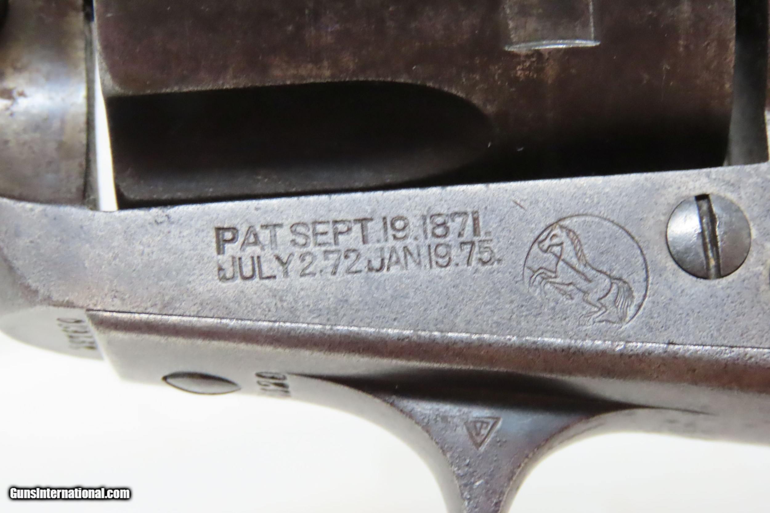 Description: COLT Single Action Army “PEACEMAKER” .38-40 WCF Caliber Revolver C&R SAA 1st Gen .38 WCF Colt 6-Shooter Made in 1907! Here we present a C&R First Generation Colt Single Action Army Revolver in .38-40 WCF, manufactured in 1907 in Hartford, Connecticut. The Colt “Peacemaker” was introduced in 1873 and has become one of the most iconic firearms in all of history, thanks to its widespread use by the U.S. military, civilians and, more recently, in Western films. Total production numbers for the “First Generation” (c. 1873-1940) Colt Single Action Army reached 357,859. These continued to be relied upon as well as “hot-rodded” by the likes of Elmer Keith, Skeeter Skelton, many other lawmen and gun writers of the time. Though Colt enjoyed the largest contracts of any handgun maker during the American Civil War, it had to rely on its array of percussion fired revolvers, namely the 1860 Army until the Smith & Wesson owned Rollin White Patent expired in 1869. This enabled them to begin making revolvers with completely bored through cylinder chambers in order to utilize modern metallic cartridge ammunition in the most effective manner. In 1869, Colt began development of a suitable cartridge revolver in earnest, first coming out with a number of conversions for their percussion lines, until 1872 when they debuted what was to become the Colt Model 1873 Single Action Army in the 1872 U.S. Trials. Needless to say, it won, and became the Army’s revolver of choice. It also became the sidearm of choice for many others like cowboys, guards, lawmen, crooks, shopkeepers and all manner of civilians. The overall condition is very good. Excellent action. The bore is in good shape for its age with good rifling. Both grips are solid with average wear. Legible markings. Numbers match. This firearm is classified as a Curio & Relic. Barrel is 4-3/4 inches. Caliber: .38-40 WCF Overall condition as seen in photos. Very Fast. Very Safe. FREE SHIPPING. Will need to be sent to your local FFL or C&R licensee. This firearm is classified as a Curio & Relic. Guaranteed AUTHENTIC & Includes CERTIFICATE OF AUTHENTICITY. ancestryguns $3800 #220152 SOLD Curio/Relic: Yes |