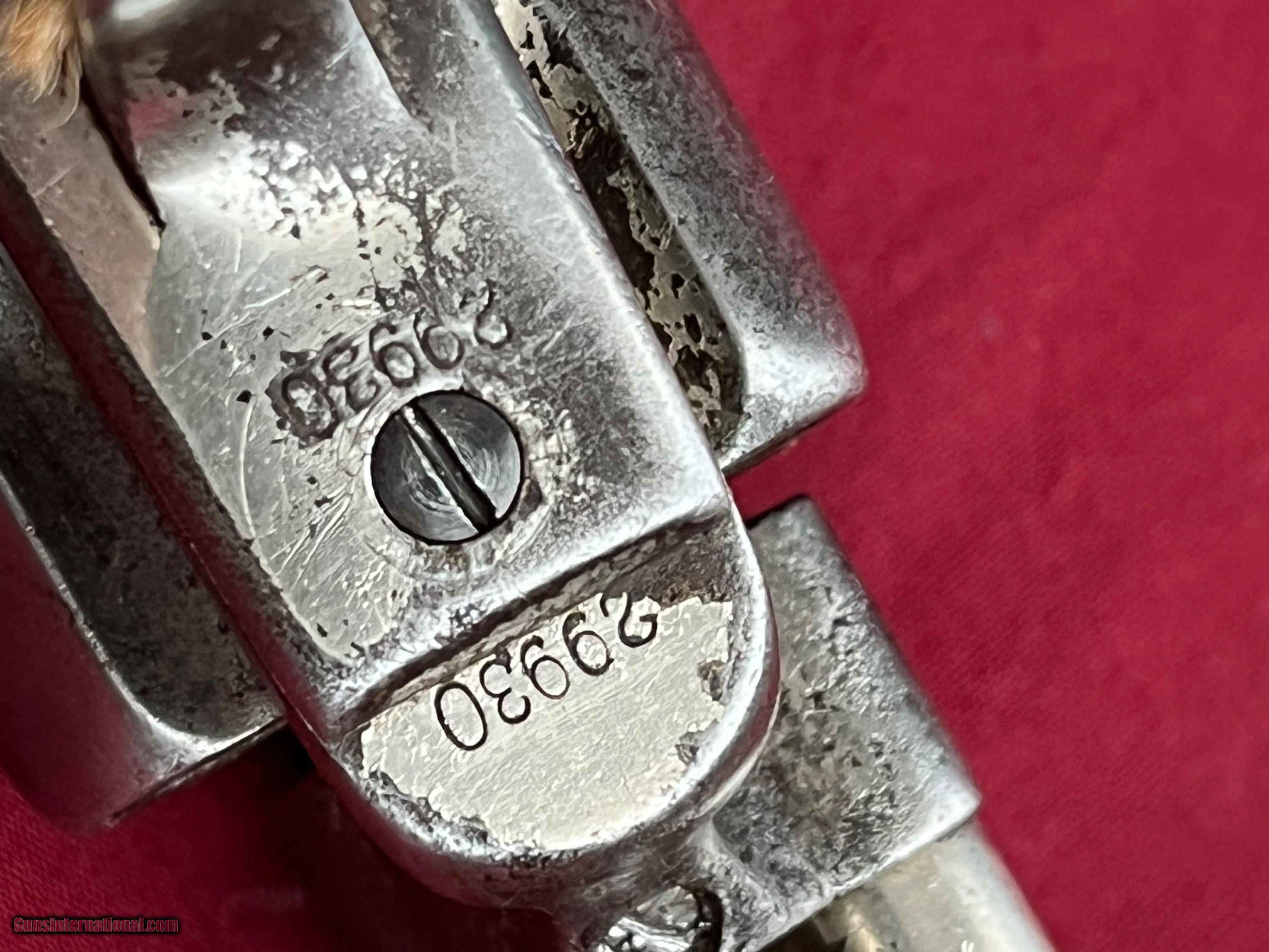 Description: COLT SINGLE ACTION ARMY REVOLVER SER# 29890 MADE IN 1876. CALIBER 45, FLAKING NICKEL FINISH . 7 1/2 " BARREL WITH A FAIR BORE SHOWING RIFLING WITH MODERATE PITTING. ACTION CYCLES AND FUNCTIONS FINE. CYLINDER PIN SCREW IS BOGGERED. GRIPS ARE SOLID. EASTERN BRANCH FIREARMS ADD 40.00 SHIPPING – NEXT DAY AIR SHIPPING ADD 50.00 SHIPPING – LONG GUNS GROUND OPTIONAL INSURANCE IS AVAILABLE AT 1.25 PER 100.00 Questions e-mail or call Glen at Eastern Branch Firearms 207-215-5021 TERMS – PLEASE READ BEFORE I DO NOT HAVE A LAYAWAY OPTION ( WE ACCEPT CREDIT CARDS ) -- I GET ALOT OF REQUEST FOR TRADES, I WOULD PERFER NOT TO DO TRADES ON MY INTERNET LISTINGS PAYMENT OPTIONS- We accept money orders, cashier’s checks , bank checks. sorry no personal checks. We accept all major credit cards please add 3% to the ’s cash discount price.(Shipping within the state of Florida - Florida Residents must pay sales tax) .Handguns and long guns do need to be shipped separate. PLEASE do not send payment via FED EX . USPS & UPS are fine. Thank you. We include a signed copy of our FFL with each firearm shipped. SAFTY NOTICE- Buyer is solely responsible for determining that a used gun is safe to shoot. The firearms offered have not been test fired but have been given a visual inspection only for purposes. It is a requirement that every used firearm is inspected by a qualified gunsmith before firing. By , the buyer agrees to hold seller harmless against damages, injury, or death caused by defective merchandise. RETURN POLICY- All firearms come with a 3-day non firing , non messing with ( turning srews ,taking apart,removing parts, scoping. firing, cleaning or messing with in anyway) inspection/return privilege.Inspection is based on a visual review of the gun to confirm the gun is in the condition stated. In the case of a return, buyer pays all shipping charges & if paid for with a credit card buyer absorbs the 3% credit card charges . So please ask questions BEFORE you bid. Thanks for Looking and Good Luck!! U.S. sales only, no exports…this includes antiques. I will ship to third party for exporting SOLD Curio/Relic: Yes Antique: Yes |