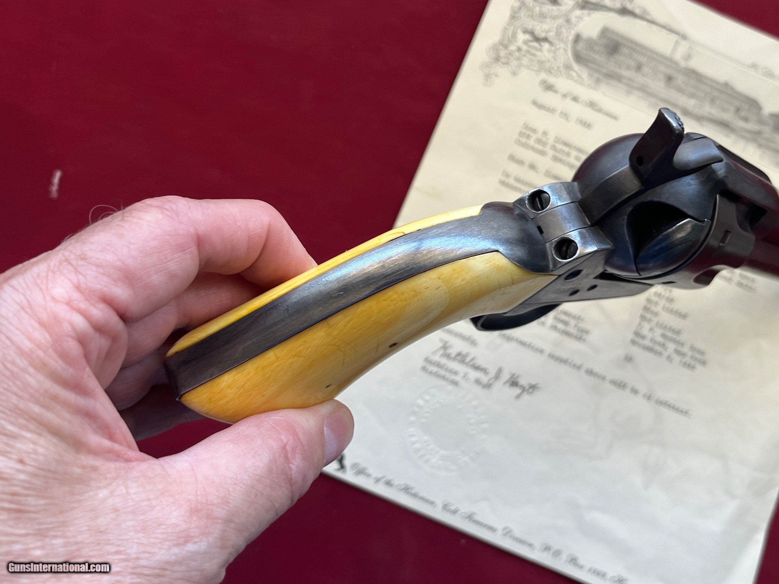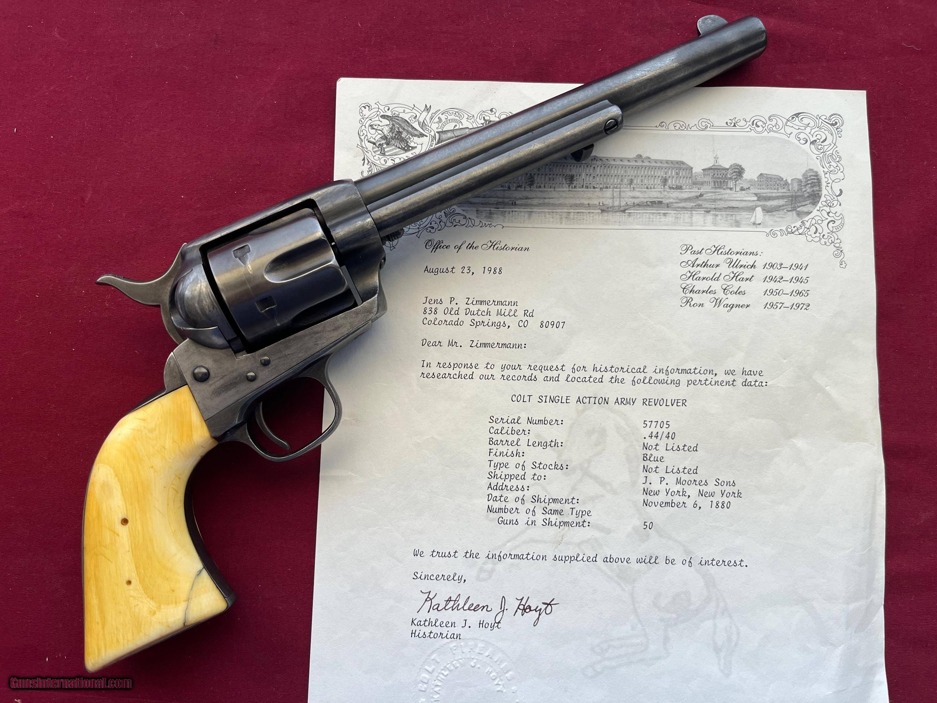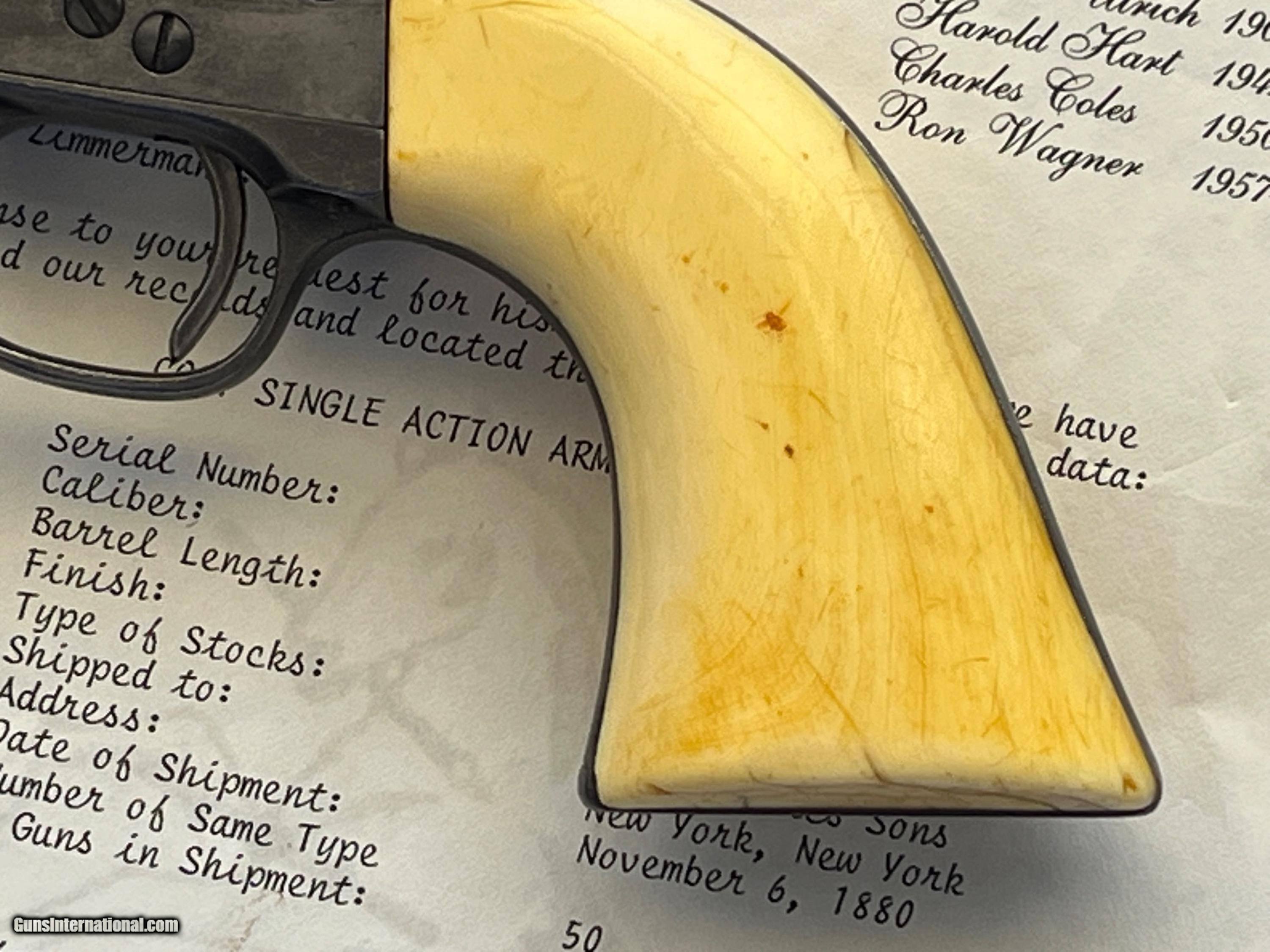 COLT SINGLE ACTION ARMY REVOLVER ETCHED PANNEL " FRONTIER SIX SHOOTER 44-40" IVORY GRIPS