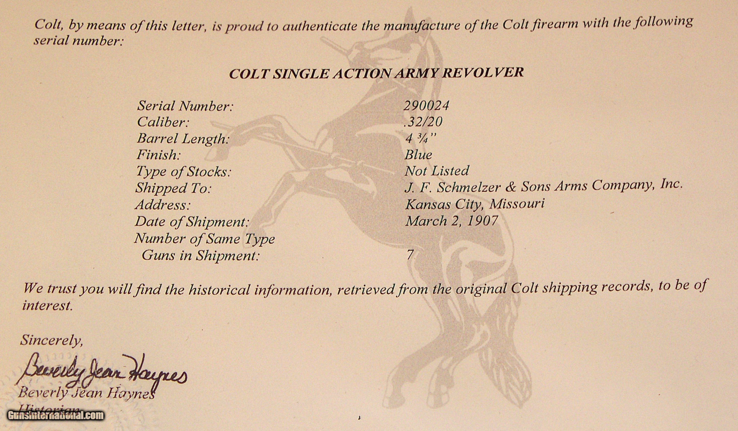 Colt Single Action Army Revolver SAA 1st Gen. 4.75” .32WCF w/Letter, Holster c. 1907