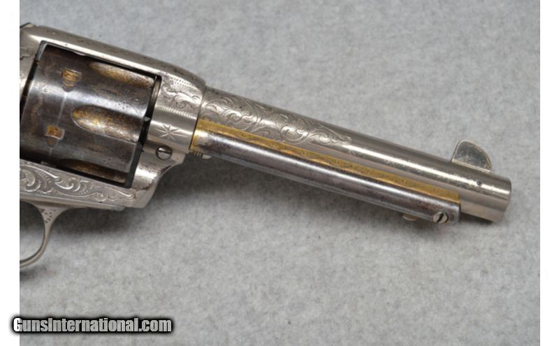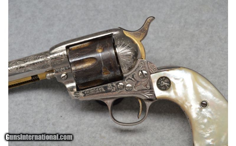 Description: Embellished by Master Engraver Cuno A. Helfricht (known for the elegance and style in his work) this beautiful and very rare Colt from 1912 proves that some aesthetics remain timeless. This firearm includes a factory letter, factory pearl grips, and rare, even for a factory engraved Colt, golden accents. SOLD Curio/Relic: Yes Caliber Info: .45 Colt Metal Condition: good with wear Wood Condition: very good with handling marks Bore Condition: clean Barrels: 5.5 Stock: pearl grips Weight: 2lbs 8oz Sights: notch and blade Item Location: Fort Worth, TX |