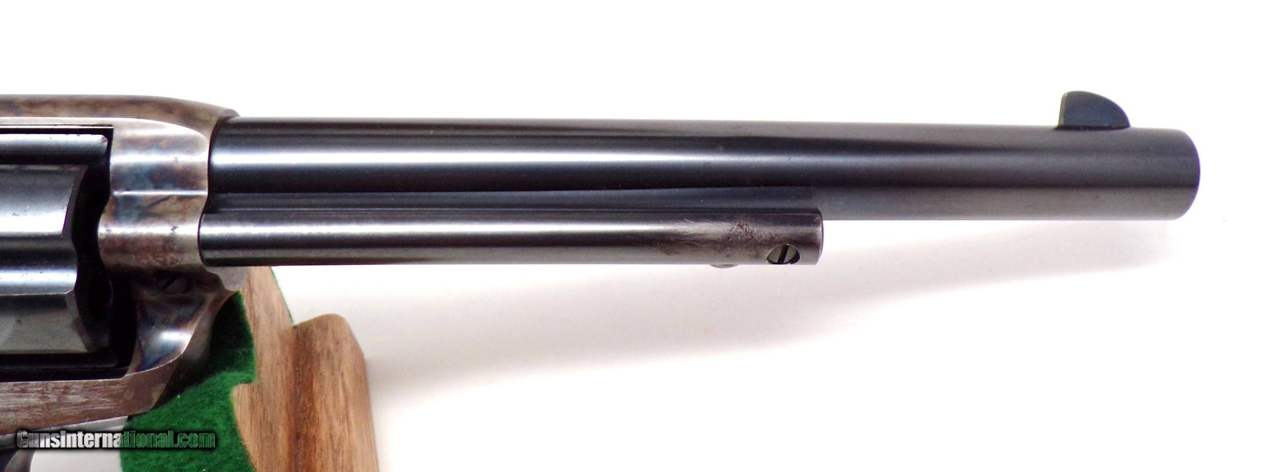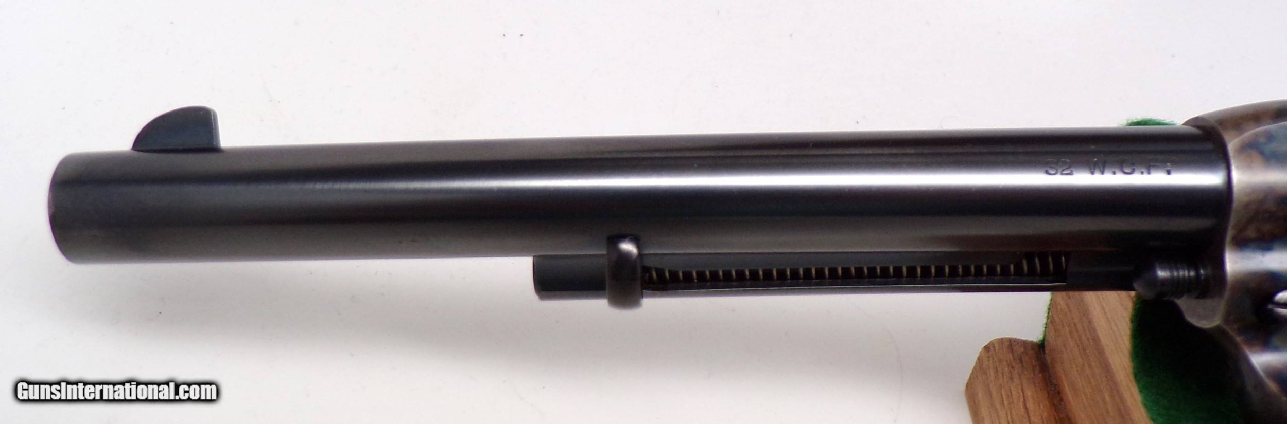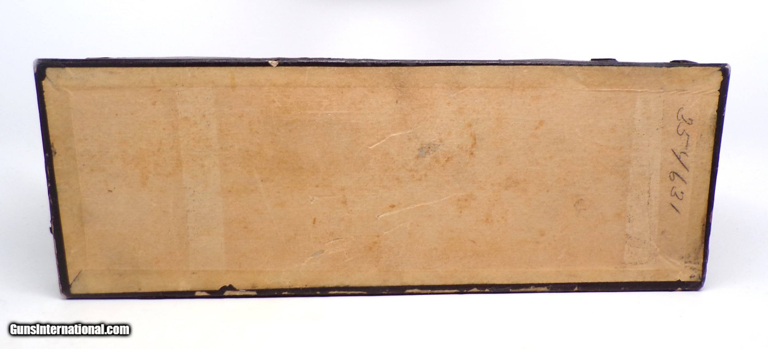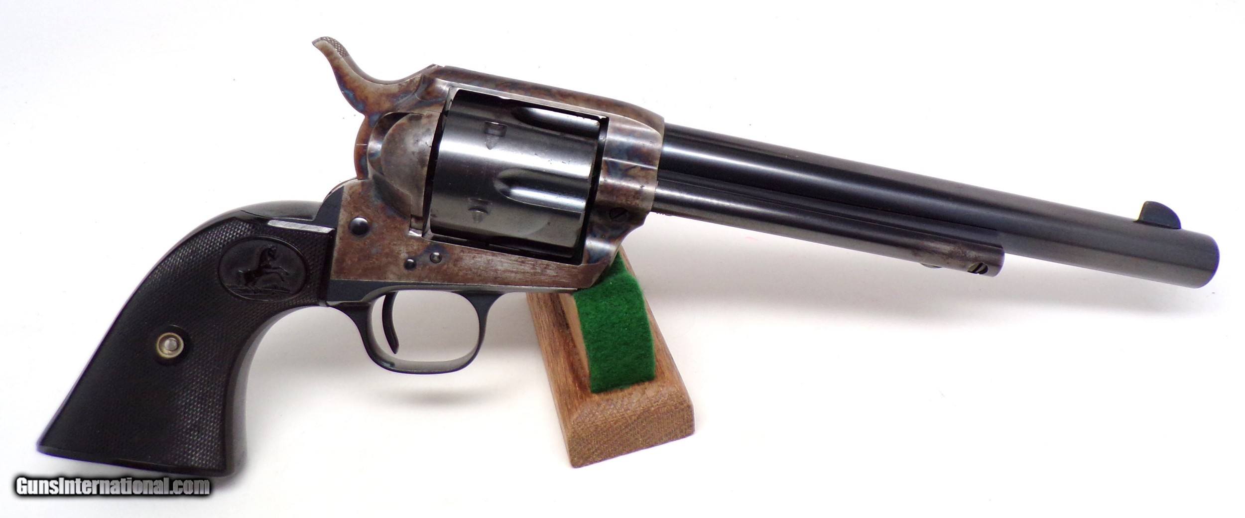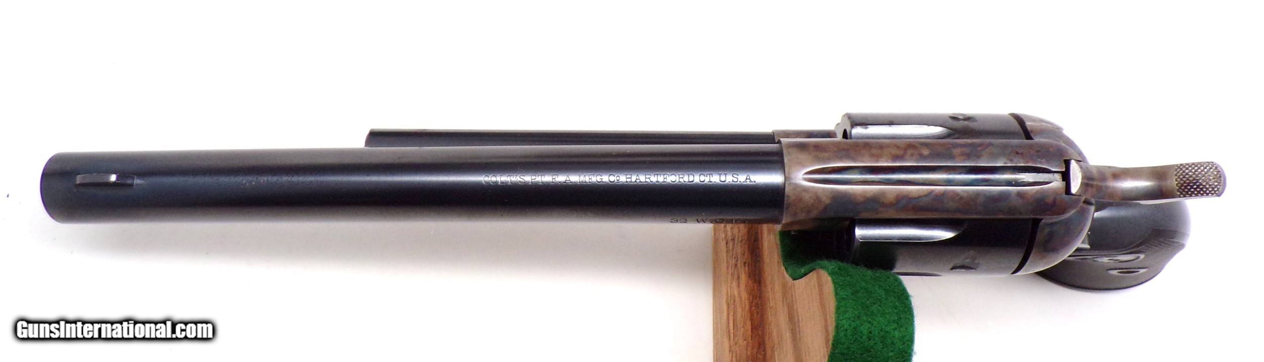 Description: SOLD As you can see in the pictures this is a nice Colt Single Action Army. On June 1, 1932 it shipped to Wolf & Klar, Ft. Worth, Texas for M. Harvey and Company of Baytown, Texas. This .32 caliber revolver was in a one gun shipment. Bore in the 7 1/2" barrel is bright and shiny. It shows little use. Action is smooth and it locks up fault tight. No Play in the cylinder. Grips are excellent and show virtually no wear. Fit is perfect, as you would expect. Notice the condition. A very high percentage of the original case color remains. Same for the original blue. Screws are excellent and don't seem to have been turned. All markings are clear and original. With the revolver you will also receive the original numbered box. The pictures of the revolver and the box clearly and fairly show the condition. Along with the box and revolver you will receive a hand written letter from the nephew of the owner. The letter states his dad and uncle moved to Texas from Missouri in 1936. There must have been another owner prior to Uncle Everett or the gun sat for a few years in the hardware store. Doesn't really matter though. You will like this Colt Single Action. It is nice enough for any collection. SOLD |