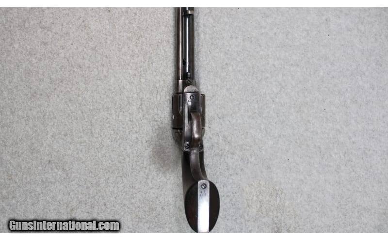 Description: U.S. marked Colt Single Action Army chambered in .45 Colt. The serial number (82794) dates the frame of the revolver to 1882 and it started its life as a Cavalry Model with 7-1/2 inch barrel. Like most U.S. revolvers, the gun was arsenal refurbished and the barrel cut down to 5-1/2 inches. From 1895 to 1903 several "U.S." marked Single Action Army revolvers were returned to either the Colt factory or Springfield Armory where they were dismantled, refinished, and modified to 5-1/2-inch barrel length for use with smokeless powder. The mass arsenal rebuilds resulted in a mix of serial numbers and markings. The trigger guard ("131231") dates to 1890 and the back strap ("47388") dates to 1878. The underside of the barrel is stamped with a "P" proof and inspector initials "D.F.C.". The left side of the frame has the two-line address followed by "US." The included factory letter confirms the original shipment of the frame to the U.S. government inspector at the Colt plant on 30 October 1882, and has additional notes that it was returned to the factory for refurbishment and reassembly in Artillery configuration and reshipped on 15 July 1901. Comes with a "US" marked leather holster and leather belt with "US" buckle. .45 Colt SOLD Metal Condition: Good with Handling Marks and Finish Wear Wood Condition: Good with Handling Marks and Wear Bore Condition: Slight Darkening with Light Pitting Barrels: 5.5 inch Butt Pad: Walnut Weight: 2 lbs 4 oz Item Location: Fort Worth, TX |