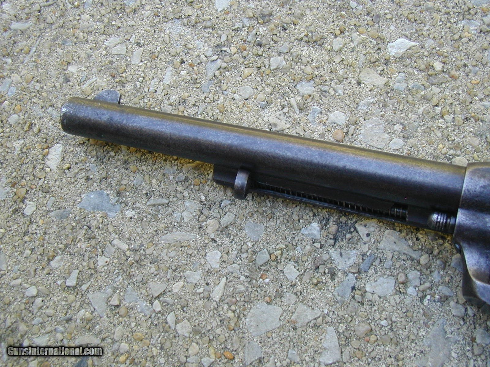 Description: ***** S P F ***** THIS IS A NICE AUTHENTIC COMPLETLEY ORIGINAL D.F.C. INSPECTED COLT U.S. CAVALRY ISSUE. IT IS IN THE 1ST RANGE FOR D.F.C. , CIRCA 1880.....IT HAS A GOOD LEGIBLE 1880 CARTUCHE ON THE LEFT SIDE OF THE ORIGINAL ONE PIECE GRIPS WITH A VERY FAINT DFC CARTUCH ON THE RIGHT. THE GRIPS ARE FULL AND FIT PERFECTLY AND WE ARE QUITE SURE THEY ARE THE ORIGINAL GRIPS TO THE GUN . IT IS ALL MATCHING THROUGHOUT, THE ACTION IS TIGHT AND WORKS PERFECTLY. IT HAS A BROWNISH ORIGINAL PATINA FINISH WITH EXCELLENT MARKINGS, ALTHOUGH THE MARKINGS ARE LESS DEFINED ONLY ON THE CYLINDER FROM POWDER FOWLING, BUT THEY ARE ALL THERE; DFC . P AND THE MATCHING GUN NUMBER, PICTURED AS GOOD AS WE CAN DO. THE BORE IS VERY GOOD, 8/10. A VERY SOLID NICE EARLY ORIGINAL COLT U.S. REVOLVER. ANTIQUE. SOLD Antique: Yes |