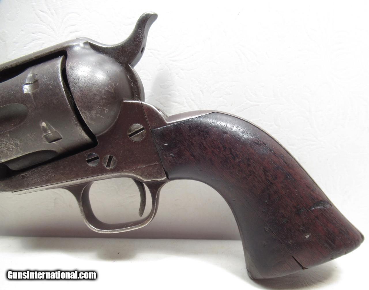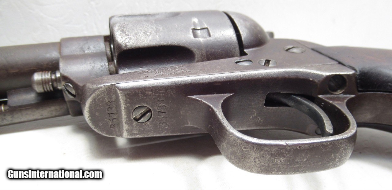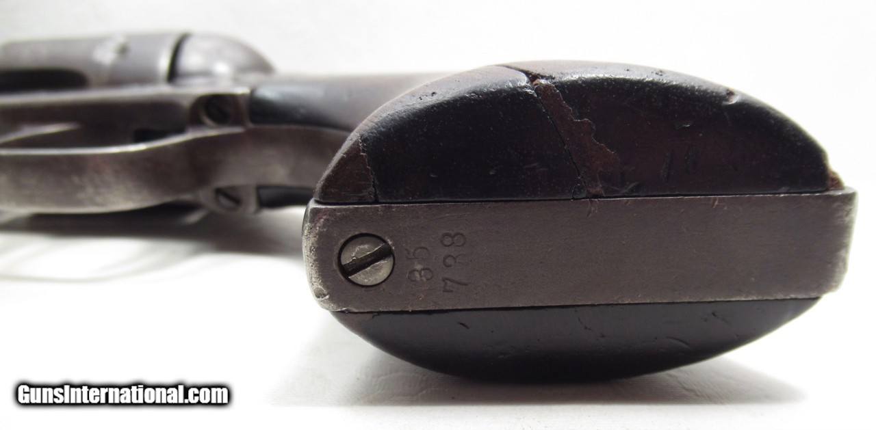 Description: SALE PENDING--Colt Single Action Army Revolver; Serial No. 35738; Per Included Factory Letter: Part of a 50 Gun Shipment to Major Colt Distributor Schuyler, Hartley & Graham of New York, NY on October 13, 1877; .45 Caliber; 7 ½” Barrel; Perfect Action and Very Strong Bore; All Numbers Match with “5738” on Barrel and Cylinder; Brown Patina Gun with no original finish present; Original 2nd Style Ejector Housing; Honest 146 Year-Old Texas Cowboy Colt Revolver from the Collection of Dr. H.H. Miller of Abilene, Texas; See All Photos for Condition; No Texts; Call (254)541-5765 or Email Only; PERSONAL PROPERTY of Harold Wieser; Price: $3,975 + $45 S&H Via USPS PRIORITY MAIL; Payment Address: Harold Wieser - 1466 U.S. Hwy 77 - Rosebud, TX 76570; SEND PAYMENTS VIA USPS PRIORITY MAIL; BEWARE of SCAMS!!! – DO NOT SEND MONEY or CORRESPONDENTS ELECTRONICALLY UNLESS YOU HAVE SPOKEN to HAROLD WIESER FIRST! 254-541-5765 SOLD Antique: Yes Manufacturer: Colt Model: 1873 Serial Number: 35738 |