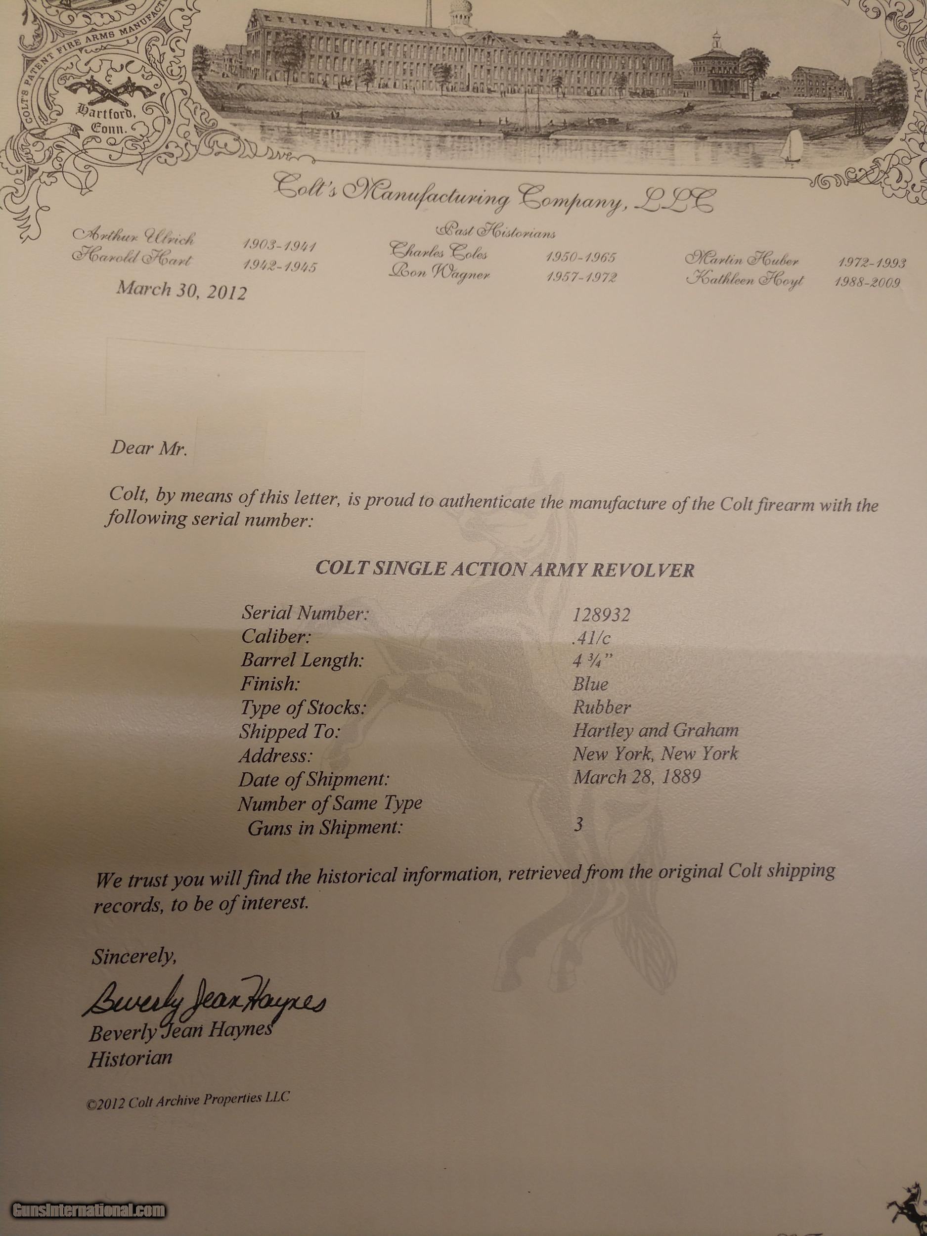Early Colt SAA in 41 Long Colt