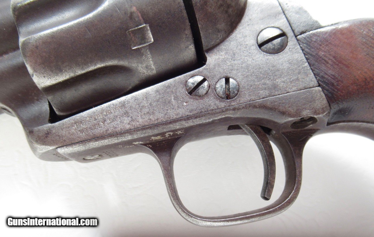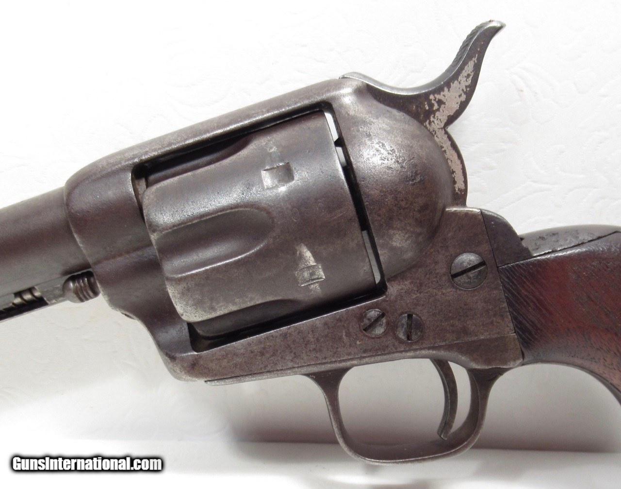 Description: Colt Single Action Army; Serial No. 28086; 45 Caliber with 7 ½” Barrel; Traces of Dealer Applied Nickel; “Francisco Morales T” Inscribed on Right Side of Barrel; All Numbers Match; Nice Original Walnut Grips; Perfect Action and Very Strong Bore with minor flaws; Great Old Holster Included; Note: I do not have letter but info is Revolver Lettered Blue to Hartley & Graham on September 1, 1876; Very Colorful 147 Year-Old Colt 45; See All Photos for Condition; No Texts; Call (254)541-5765 or Email Only; PERSONAL PROPERTY of Harold Wieser; Price: $6,975 + $45 S&H Via USPS PRIORITY MAIL; Payment Address: Harold Wieser - 1466 U.S. Hwy 77 - Rosebud, TX 76570; SEND PAYMENTS VIA USPS PRIORITY MAIL; BEWARE of SCAMS!!! – DO NOT SEND MONEY or CORRESPONDENTS ELECTRONICALLY UNLESS YOU HAVE SPOKEN to HAROLD WIESER FIRST! 254-541-5765 SOLD Antique: Yes Manufacturer: Colt Model: 1873 Serial Number: 28086 |