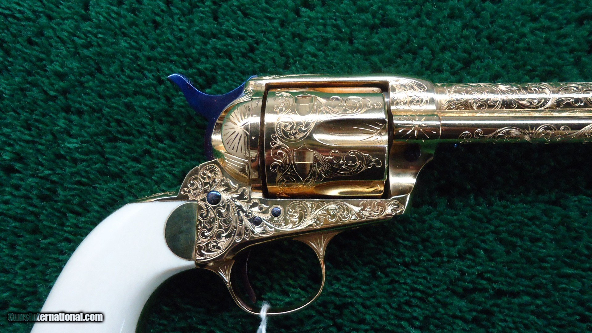 ENGRAVED GOLD PLATED COLT SAA IN CALIBER 45 LC