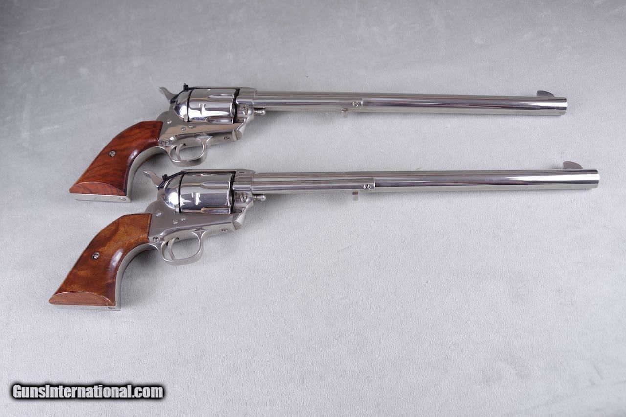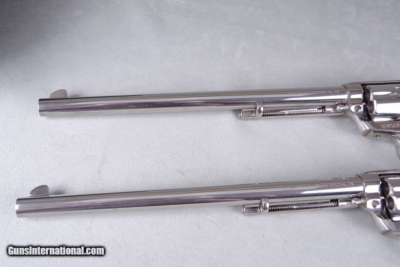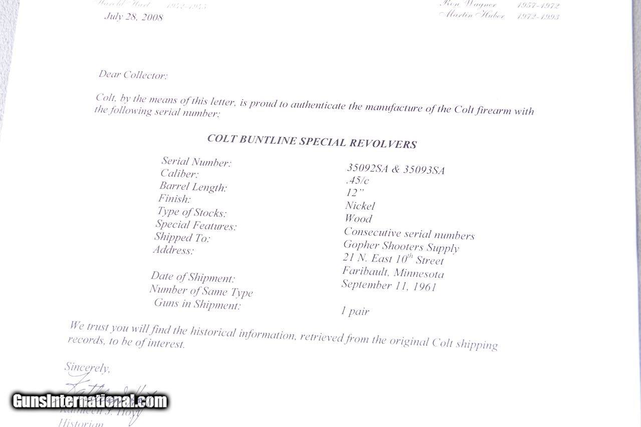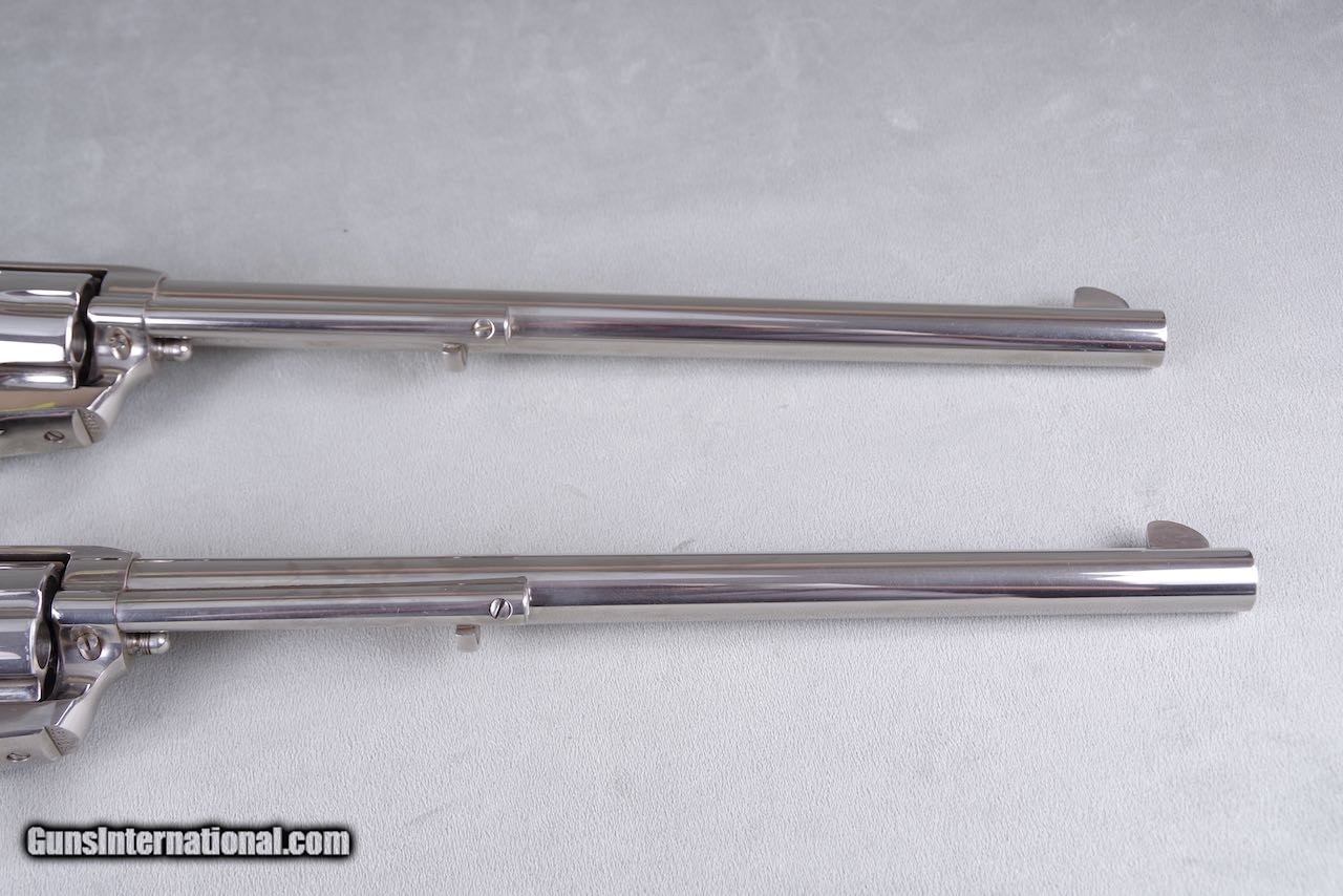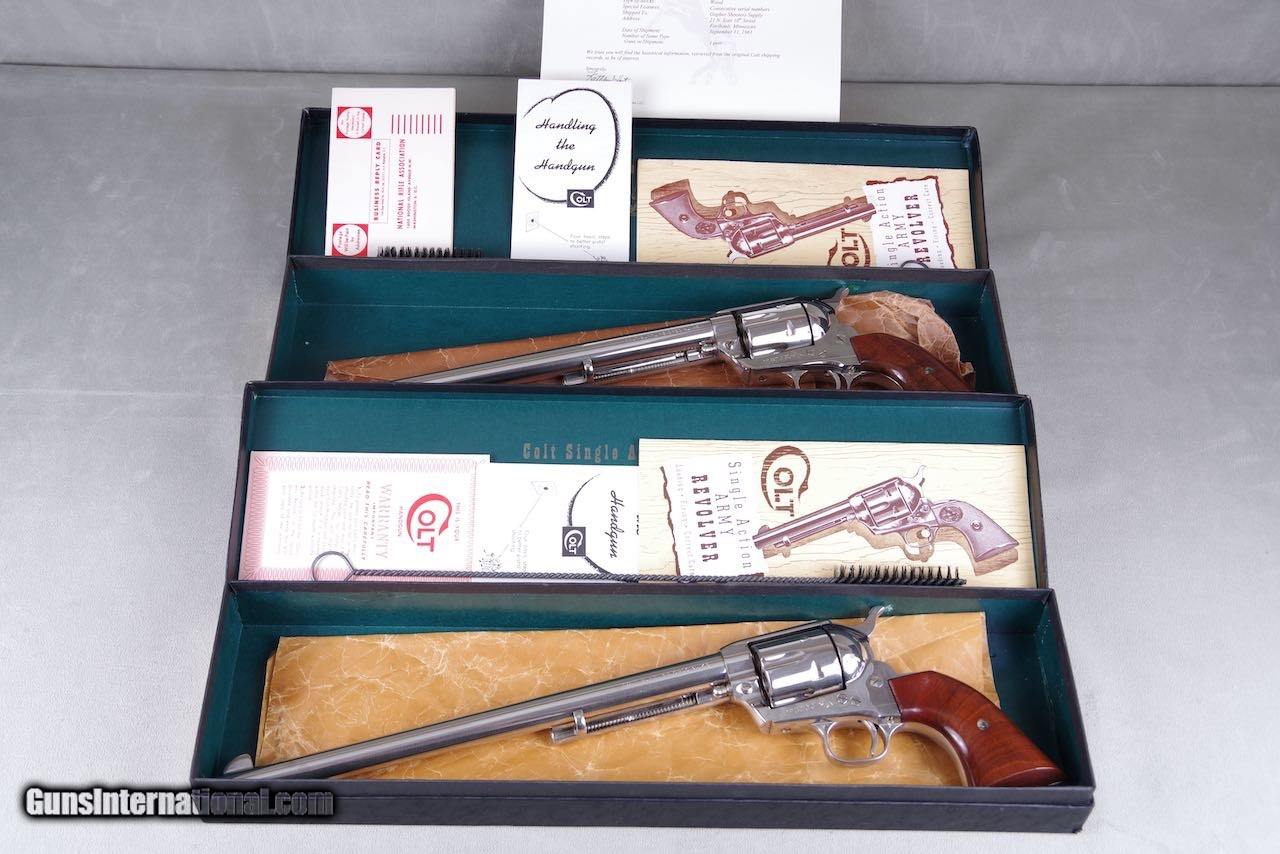 Exceptional & Extremely Rare 1961 Colt Buntline SAA 45LC 12'' Nickel Consecutive Set New in Black Boxes
