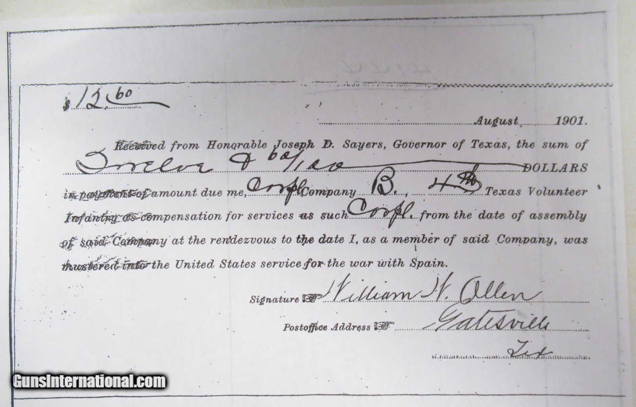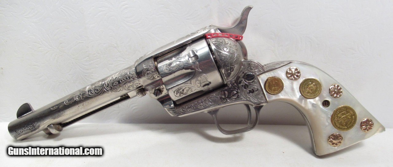 Description: Colt Single Action Army Revolver; Serial No. 346458; .45 Caliber with 5 ½” Barrel; Factory Engraved with Pearl Grips Adorned with Gold; Really Nice Holster Rig Included; Colt was in Texas Ranger Hall of Fame and Museum in Waco, Texas until Joyce Bone Retrieved it; Look at Photos for Condition and Documents for History; Family Still Owns Original Ranch Near Gatesville, Texas (Est. 1856); See All Photos for Condition; No Texts; Call (254)541-5765 or Email Only; PERSONAL PROPERTY of Harold Wieser; Price: $34,975 + $45 S&H Via USPS PRIORITY MAIL; Payment Address: Harold Wieser - 1466 U.S. Hwy 77 - Rosebud, TX 76570; SEND PAYMENTS VIA USPS PRIORITY MAIL; BEWARE of SCAMS!!! – DO NOT SEND MONEY or CORRESPONDENTS ELECTRONICALLY UNLESS YOU HAVE SPOKEN to HAROLD WIESER FIRST! 254-541-5765 SOLD Manufacturer: Colt Model: 1873 Serial Number: 346458 |