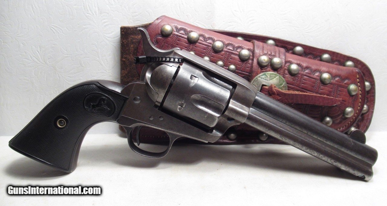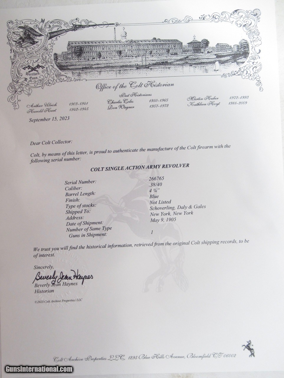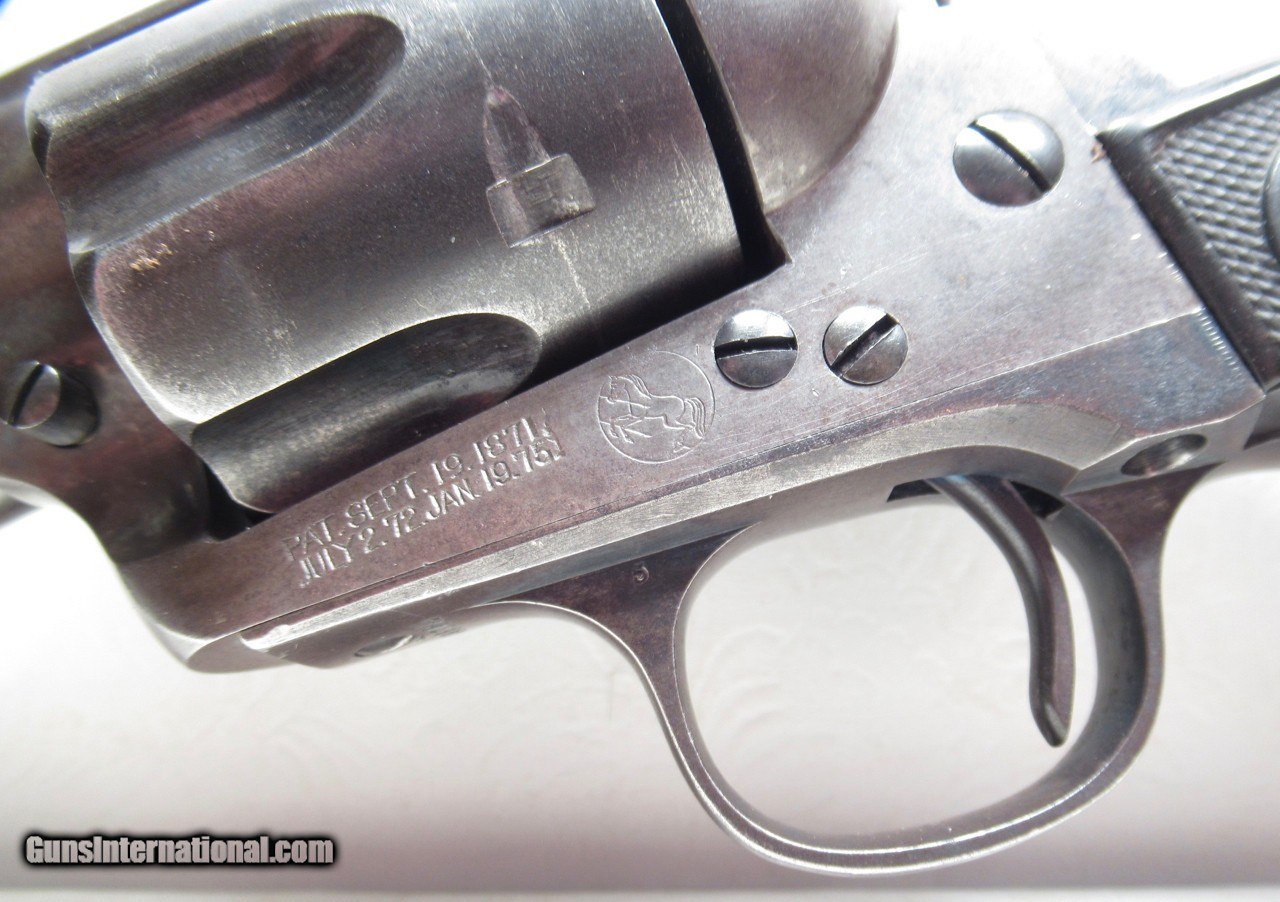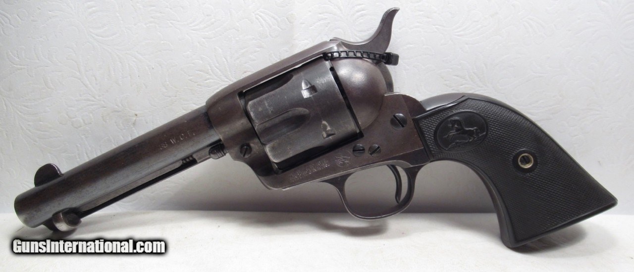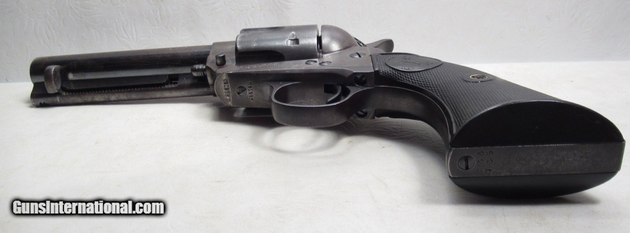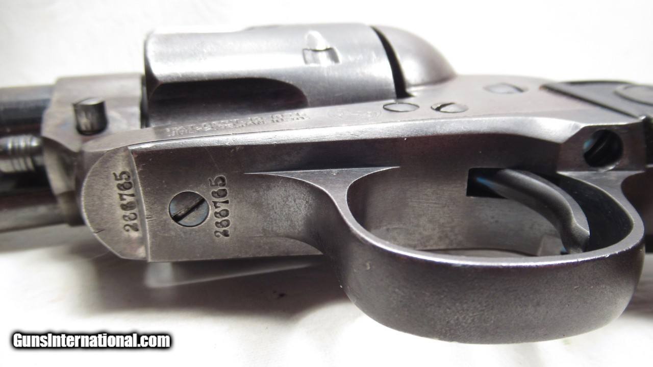 Description: Colt Single Action Army Revolver; Serial No. 266765; Per Factory Letter: 38 W.C.F. Caliber with 4 ¾” Barrel and Blue Finish; Shipped to Colt Major Distributor Schoverling, Daly and Gales, New York, NY as a One Gun Shipment on May 9, 1905; Lots of Original Metal Finish Remains; Really Sharp Colt Hard Rubber Grips; Perfect Action and Bore; Comes With Nice Spotted Holster; This Fine 118 Year-Old Colt Came Out of Ft. Smith, Arkansas this Year; See All Photos for Condition; No Texts; Call (254)541-5765 or Email Only; PERSONAL PROPERTY of Harold Wieser; NOTICE: We Do Not Do Any Consignments - All Items Listed are Owned by Us - NO SALES to New Jersey or New York City - Antiques Only to Massachusetts and California; Price: $6,975 + $45 S&H Via USPS PRIORITY MAIL; Payment Address: Harold Wieser - 1466 U.S. Hwy 77 - Rosebud, TX 76570; SEND PAYMENTS VIA USPS PRIORITY MAIL; BEWARE of SCAMS!!! – DO NOT SEND MONEY or CORRESPONDENTS ELECTRONICALLY UNLESS YOU HAVE SPOKEN to HAROLD WIESER FIRST! 254-541-5765 SOLD Manufacturer: Colt Model: 1873 Serial Number: 266765 |