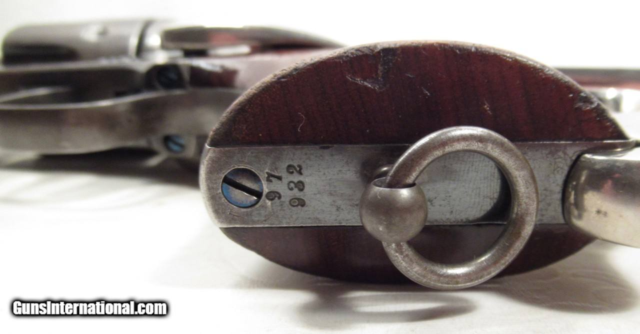 Description: Colt Single Action Army Revolver; Serial No. 97932; .45 Caliber; Blue Finish; 7 ½” Barrel with Wood Grips; Original Colt Shoulder Stock with Lanyard on Butt; Fantastic Original Condition; Lots of Original Metal Finish; Beautiful Walnut Grips with Lots of Original Varnish; Great Original Conditional Should Stock; Info from Previous Owner Indicates Colt was Owned by Old Man in New Jersey who Used it for DEER HUNTING During Season; Colt was kept in Drawer without Stock Attached when not Being Used for Hunting; Great Original Very Rare 140 Year-Old Shoulder Stocked Colt 45; See All Photos for Condition; No Texts; Call (254)541-5765 or Email Only; PERSONAL PROPERTY of Harold Wieser; Price: $15,975 + $45 S&H Via USPS PRIORITY MAIL; Payment Address: Harold Wieser - 1466 U.S. Hwy 77 - Rosebud, TX 76570; SEND PAYMENTS VIA USPS PRIORITY MAIL; BEWARE of SCAMS!!! – DO NOT SEND MONEY or CORRESPONDENTS ELECTRONICALLY UNLESS YOU HAVE SPOKEN to HAROLD WIESER FIRST! 254-541-5765 SOLD Antique: Yes Manufacturer: Colt Model: 1873 Serial Number: 97932 |