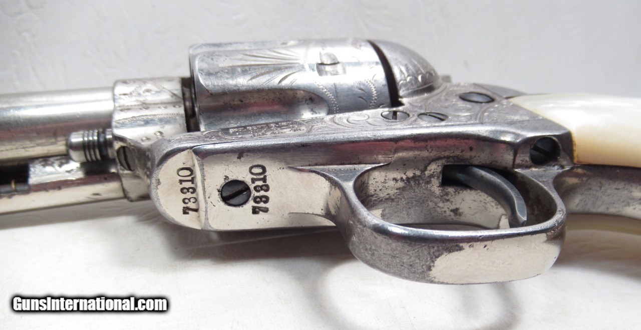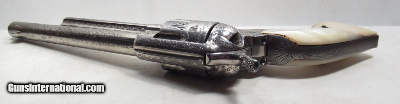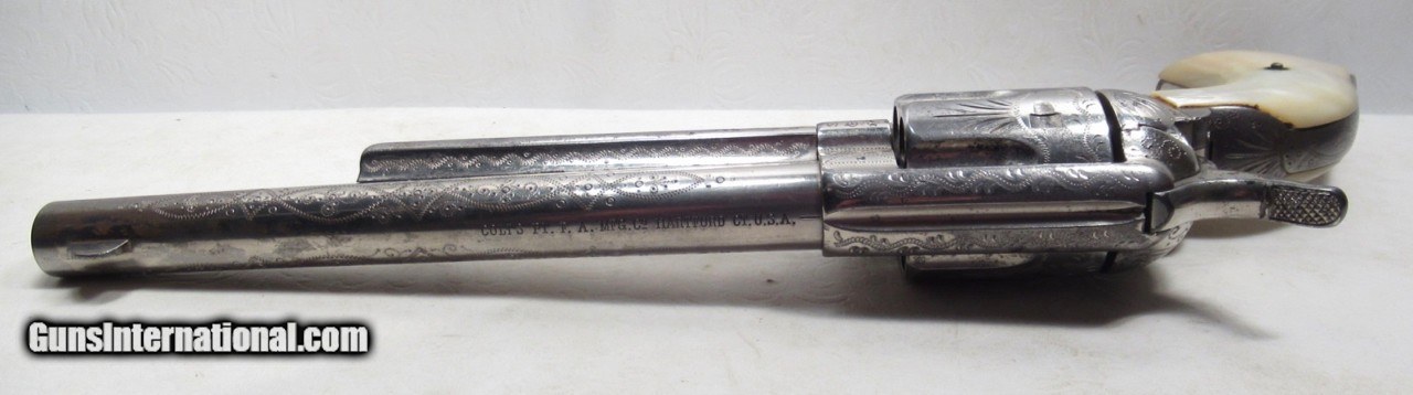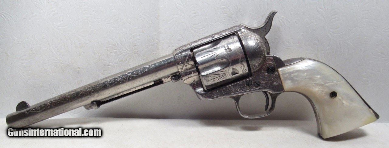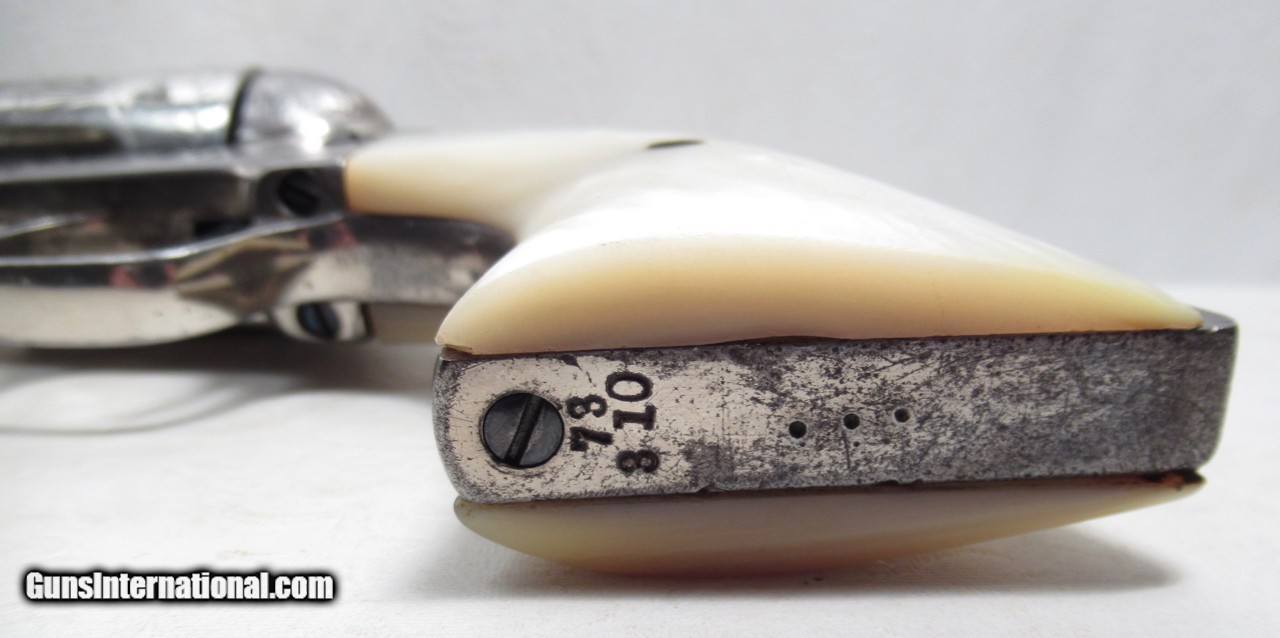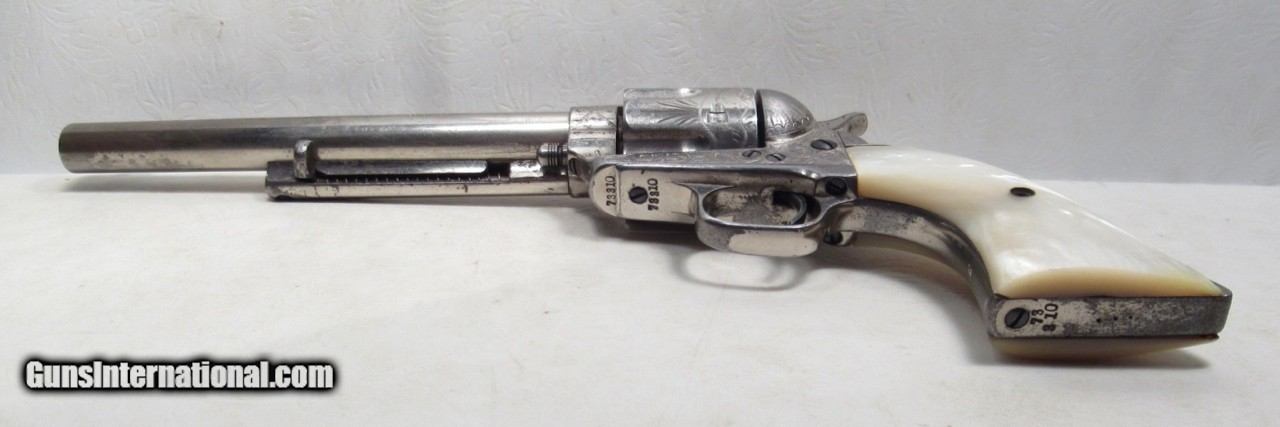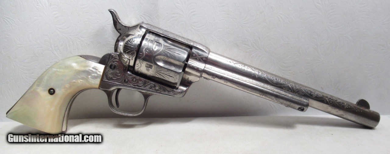 Description: Colt Single Action Army Revolver; Serial No. 73310; Per Included Factory Letter: .45 Caliber with “Soft” Finish and Shipped to Hartley & Graham of New York, NY on October 12, 1881 as Part of a 25 Gun Shipment; Fine Engraving with 80% Nickel Finish Remaining; Decent Old Pearl Grips; Perfect Action and Perfect Bore; 7 ½” Barrel – Standard for the Time; Really Fine 142 Year-Old Engraved Colt 45 Revolver; See All Photos for Condition; No Texts; Call (254)541-5765 or Email Only; PERSONAL PROPERTY of Harold Wieser; NOTICE: We Do Not Do Any Consignments - All Items Listed are Owned by Us - NO SALES to New Jersey or New York City - Antiques Only to Massachusetts and California; Price: $19,975 + $45 S&H Via USPS PRIORITY MAIL; Payment Address: Harold Wieser - 1466 U.S. Hwy 77 - Rosebud, TX 76570; SEND PAYMENTS VIA USPS PRIORITY MAIL; BEWARE of SCAMS!!! – DO NOT SEND MONEY or CORRESPONDENTS ELECTRONICALLY UNLESS YOU HAVE SPOKEN to HAROLD WIESER FIRST! 254-541-5765 SOLD Antique: Yes Manufacturer: Colt Model: 1873 Serial Number: 73310 |