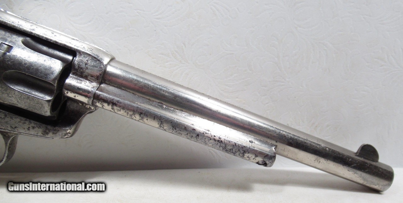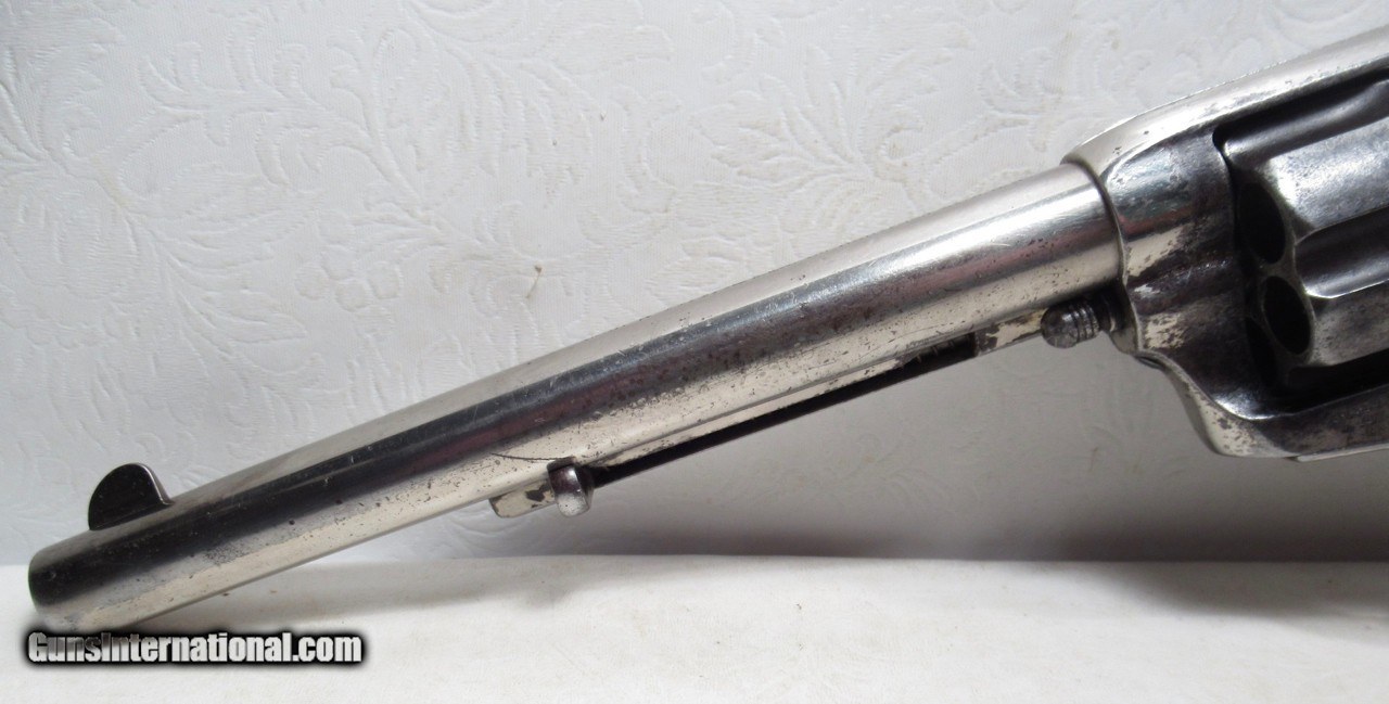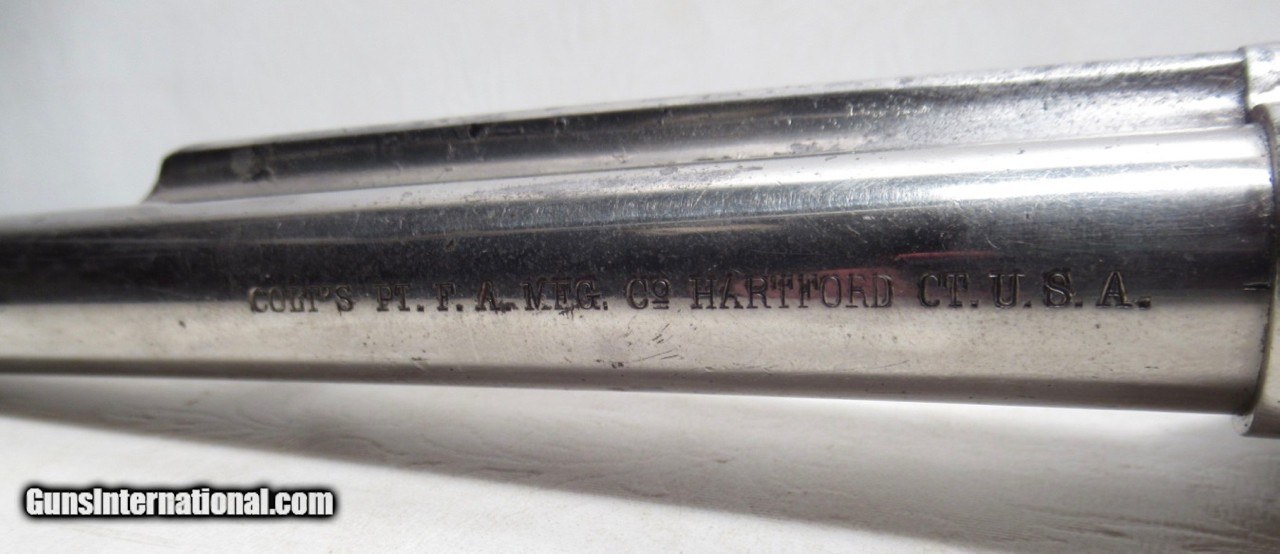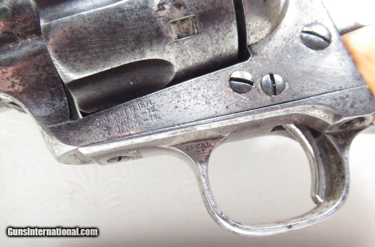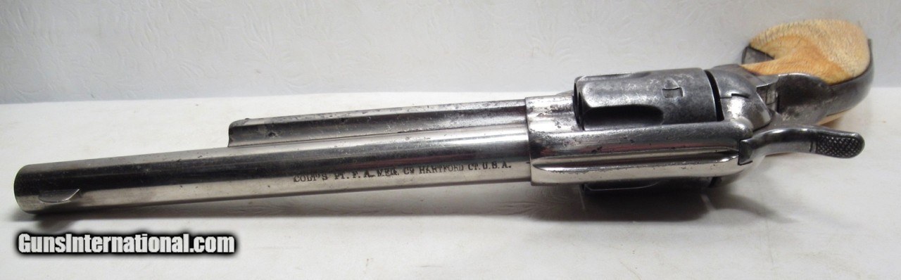 Description: Colt Single Action Army Revolver; Serial No. 63921; Per Included Factory Letter: .45 Caliber with Nickel Finish; Shipped to Colt’s Largest Western Distributor B. Kittridge & Co. of Cincinnati, Ohio on January 22, 1881 as Part of a 50 Gun Shipment; 7 ½” Barrel; Fine Aged One-Piece Ivory Grips; Gun Retains a High Percentage of Original Factory Nickel Finish; All Numbers Match; Note: Cylinder and Barrel not numbered as This was Correct for Nickel Guns of the Period; Perfect Strong Action; Very Strong Bore with Very Light Frosting; Great 143 Year-Old Western Shipped Colt 45 Revolver; See All Photos for Condition; No Texts; Call (254)541-5765 or Email Only; PERSONAL PROPERTY of Harold Wieser; NOTICE: We Do Not Do Any Consignments - All Items Listed are Owned by Us - NO SALES to New Jersey or New York City - Antiques Only to Massachusetts and California; Price: $8,975 + $45 S&H Via USPS PRIORITY MAIL; Payment Address: Harold Wieser - 1466 U.S. Hwy 77 - Rosebud, TX 76570; SEND PAYMENTS VIA USPS PRIORITY MAIL; BEWARE of SCAMS!!! – DO NOT SEND MONEY or CORRESPONDENTS ELECTRONICALLY UNLESS YOU HAVE SPOKEN to HAROLD WIESER FIRST! 254-541-5765 SOLD Antique: Yes Manufacturer: Colt Model: 1873 Serial Number: 63921 |