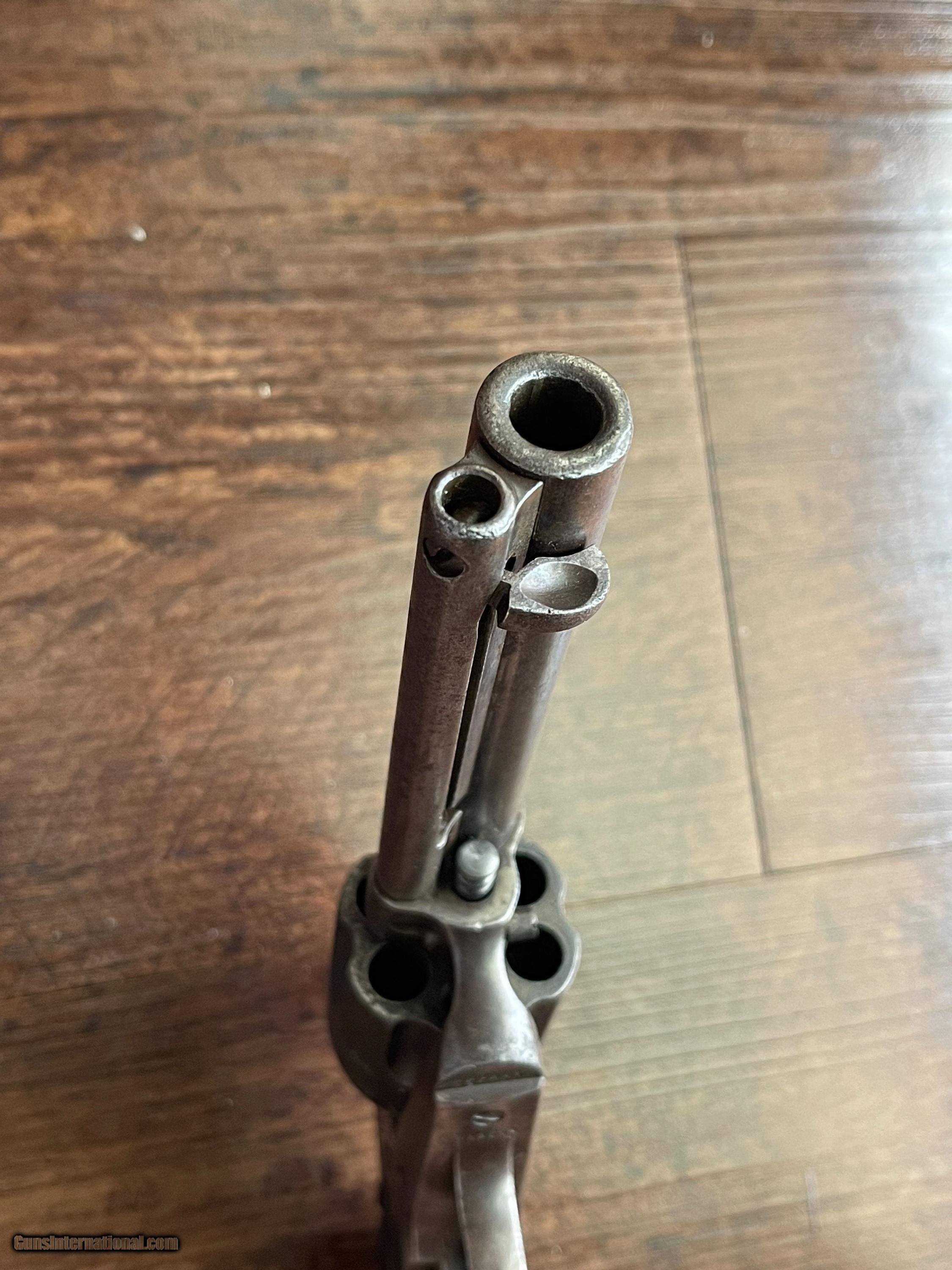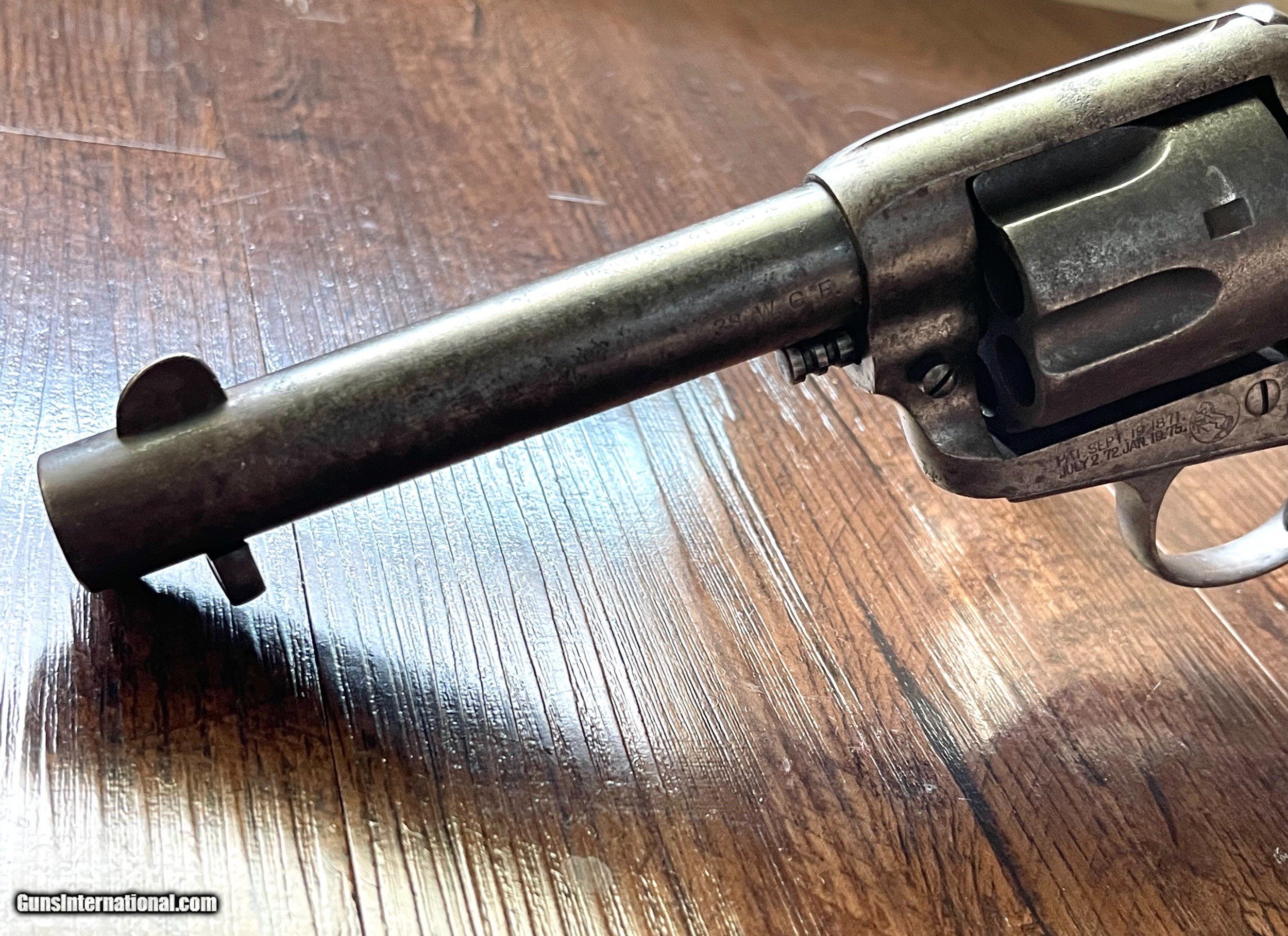 Description: First Generation - Colt SAA .38 W.C.F, manufactured in 1902. Has all matching visible serial numbers, oringinal grip panels; cylinder and hammer locks up very nicely. Bore is in good condition. This gun can be fired with no problem. The top of the barrel is marked with the two-line address with "38 W.C.F." on the left side and the two-line, three patent date marking on the left side of the frame followed by the circled Rampant Colt. The number "217" is marked on the loading gate. A great gun for thr serious collector. Overall condition as seen in photos. FFL required- Buyer is responsible for additional shipping and handling fees/taxes.We accept Venmo, Zelle, CashApp, Money Order/Certified Check via expedited shipping, Visa, MasterCard, AmEx, Discover, JCB, and UnionPay, ACH bank transfer. Credit/Debit Card Fee- 3%, ACH bank transfer- 1.5% fee. SOLD Curio/Relic: Yes Handgun Caliber: .38-40 Winchester (.38 WCF) |