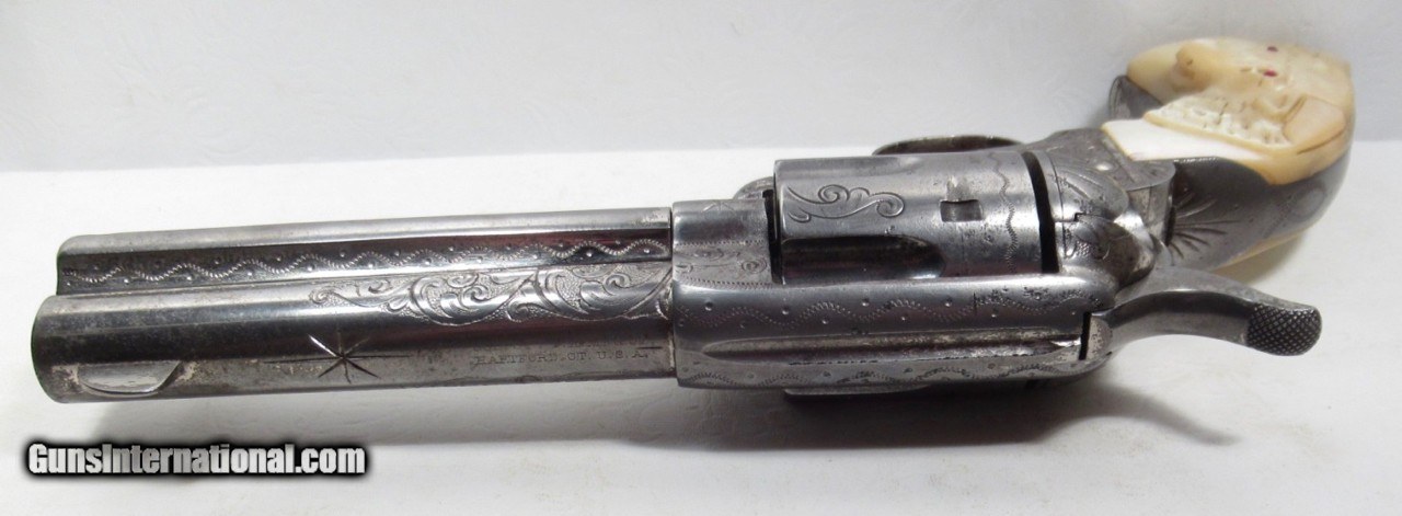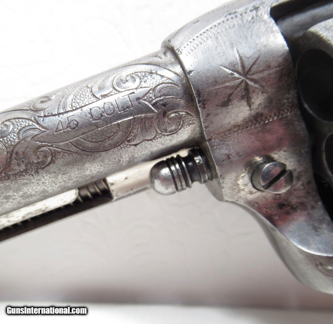 Description: Colt Single Action Army Revolver; Serial No. 319506; Per Included Factory Letter - .45 Caliber, 4 ¾” Barrel, Nickel Finish, Factory Engraved, and Shipped to H&D Folsom Arms Co. of New York, NY on October 11, 1911 as Part of a 2 Gun Shipment; Folsom was a Major Distributor; Most of Original Nickel Finish Present; Really Nice Carved Steer Head Pearl Grips; All Numbers Match; Sharp Engravings from Helfritch Shop; Perfect Action and Near Perfect Bore with only VERY LIGHT FROSTING; This 110 Year-Old Colt Surfaced North of McKinney, Texas This Year; See All Photos for Condition; No Texts; Call (254)541-5765 or Email Only; PERSONAL PROPERTY of Harold Wieser; Price: $25,975 + $45 S&H Via USPS PRIORITY MAIL; Payment Address: Harold Wieser - 1466 U.S. Hwy 77 - Rosebud, TX 76570; SEND PAYMENTS VIA USPS PRIORITY MAIL; BEWARE of SCAMS!!! – DO NOT SEND MONEY or CORRESPONDENTS ELECTRONICALLY UNLESS YOU HAVE SPOKEN to HAROLD WIESER FIRST! 254-541-5765 SOLD Manufacturer: Colt Model: 1873 Serial Number: 319506 |