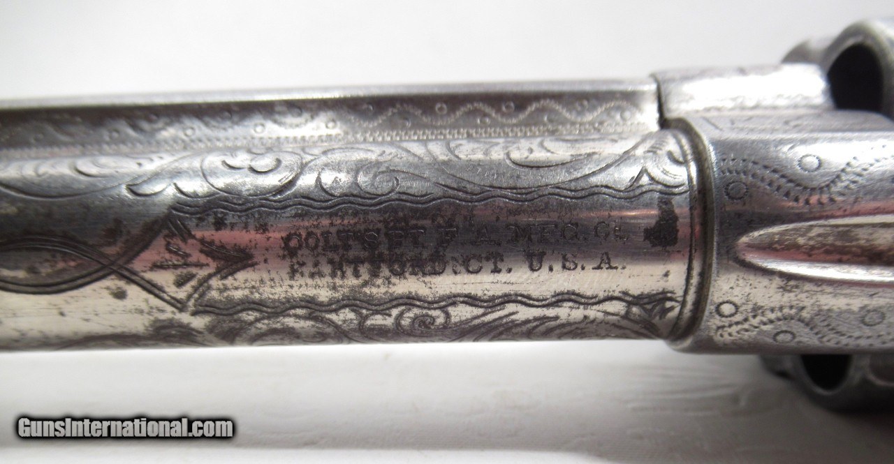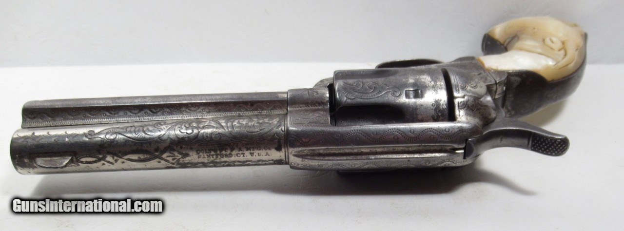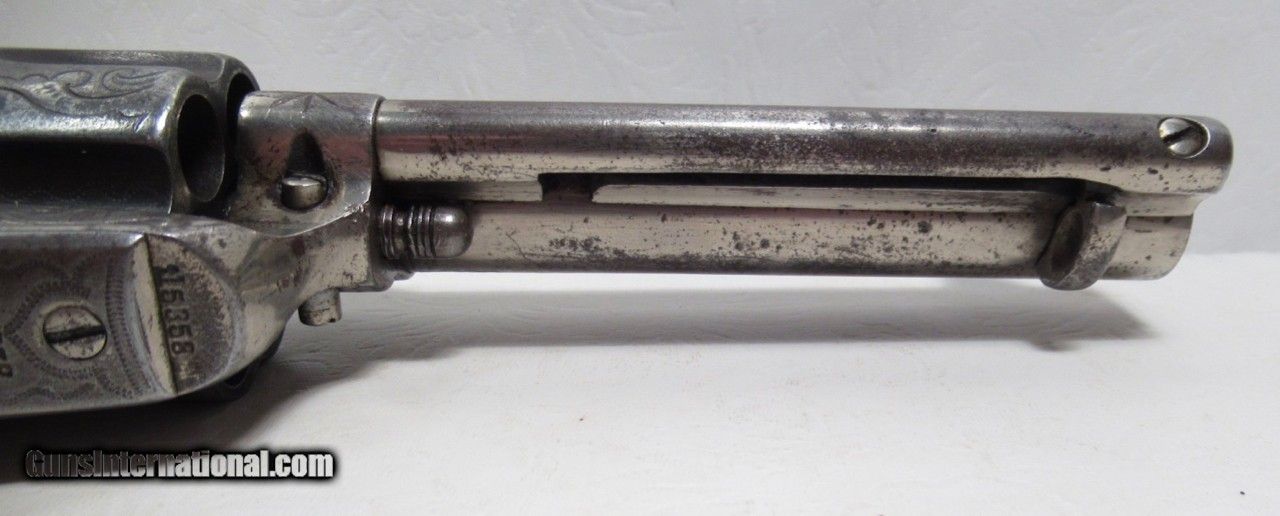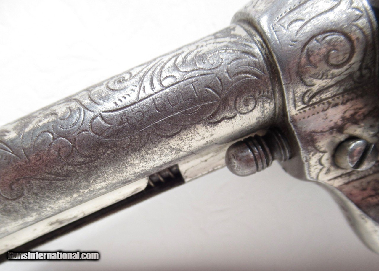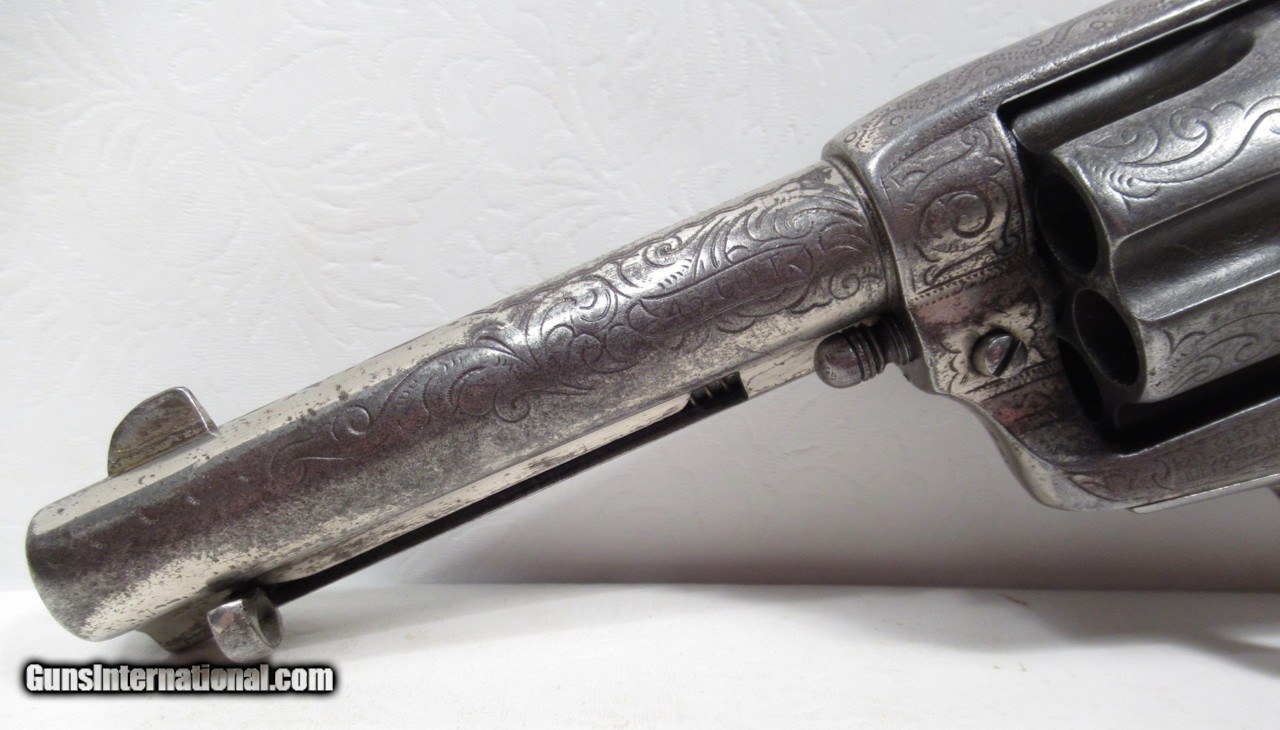 Description: Colt Single Action Army; Serial No. 215358; Per Included Factory Letter - .45 Caliber, 4 ¾” Barrel, Nickel Finish, Factory Engraved, Shipped to J.F. Schmelzer & Sons c/o S. Hirschfeld of Kansas City, Kansas on November 1, 1901; Decent Amount of Factory Nickel Remains; Gold Gilt Cylinder has only traces of Gold on ratchet on back of cylinder; Old Carved Pearl Grips with Steer Head Motif; Perfect Action; Very Strong Bore but lightly even pitting in bore; Great 120 Year-Old Cowboy Colt 45; See All Photos for Condition; No Texts; Call (254)541-5765 or Email Only; PERSONAL PROPERTY of Harold Wieser; Price: $18,975 + $45 S&H Via USPS PRIORITY MAIL; Payment Address: Harold Wieser - 1466 U.S. Hwy 77 - Rosebud, TX 76570; SEND PAYMENTS VIA USPS PRIORITY MAIL; BEWARE of SCAMS!!! – DO NOT SEND MONEY or CORRESPONDENTS ELECTRONICALLY UNLESS YOU HAVE SPOKEN to HAROLD WIESER FIRST! 254-541-5765 SOLD Manufacturer: Colt Model: 1873 Serial Number: 215358 |