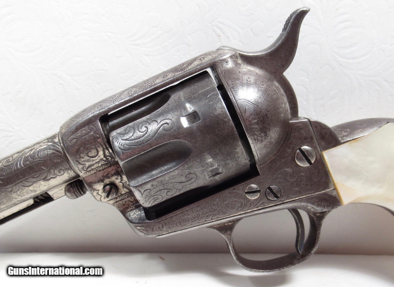 KANSAS SHIPPED FACTORY ENGRAVED COLT S.A.A. REVOLVER from COLLECTING TEXAS – GOLD GILT CYLINDER with CARVED PEARL GRIPS - 1901