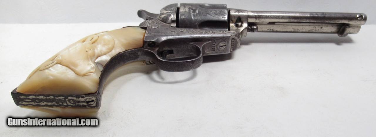 KANSAS SHIPPED FACTORY ENGRAVED COLT S.A.A. REVOLVER from COLLECTING TEXAS – GOLD GILT CYLINDER with CARVED PEARL GRIPS - 1901