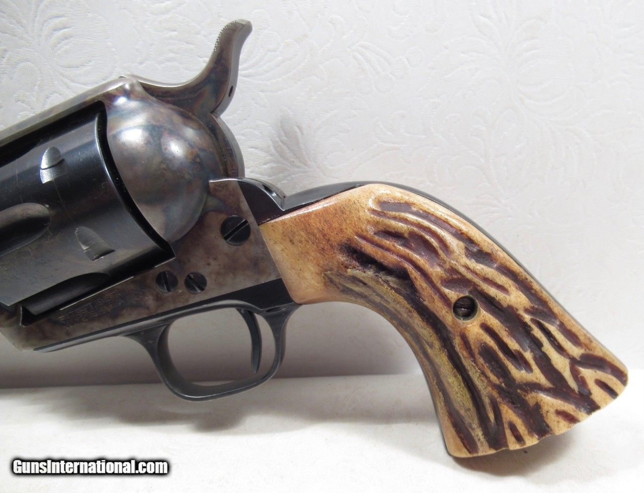 Description: Colt Single Action Army Revolver; Serial No. 343346; Per Included Factory Letter Addressed to a Hill Country Texas Collector: .45 Caliber with 5 ½” Barrel and Blue Finish; Sold to: F.S. Pearsall and Shipped to Shapleigh Hardware Company of St. Louis, Missouri on July 27, 1922 as Part of a 6 Gun Shipment; Perfect New Original Condition; Perfect Action and Bore; Nice Well Fitting Jig-Bone Grips; “46” on Back of Cylinder; “47” Assembly Number on Frame and Loading Gate; Great 103 Year-Old Texas Colt 45 Revolver; See All Photos for Condition; No Texts; Call (254)541-5765 or Email Only; PERSONAL PROPERTY of Harold Wieser; NOTICE: We Do Not Do Any Consignments - All Items Listed are Owned by Us - NO SALES to New Jersey or New York City - Antiques Only to Massachusetts and California; NOTE: All Modern Firearms Must Go to FFL Dealer who will Accept From Individual with Texas Driver License; Price: $8,975 + $45 S&H Via USPS Priority Mail; Payment Address: Harold Wieser - 1466 U.S. Hwy 77 - Rosebud, TX 76570; SEND PAYMENTS VIA USPS PRIORITY MAIL; BEWARE of SCAMS!!! - DO NOT SEND MONEY or CORRESPONDENTS ELECTRONICALLY UNLESS YOU HAVE SPOKEN to HAROLD WIESER FIRST! (254)541-5765 SOLD Manufacturer: Colt Model: 1873 Serial Number: 343346 |