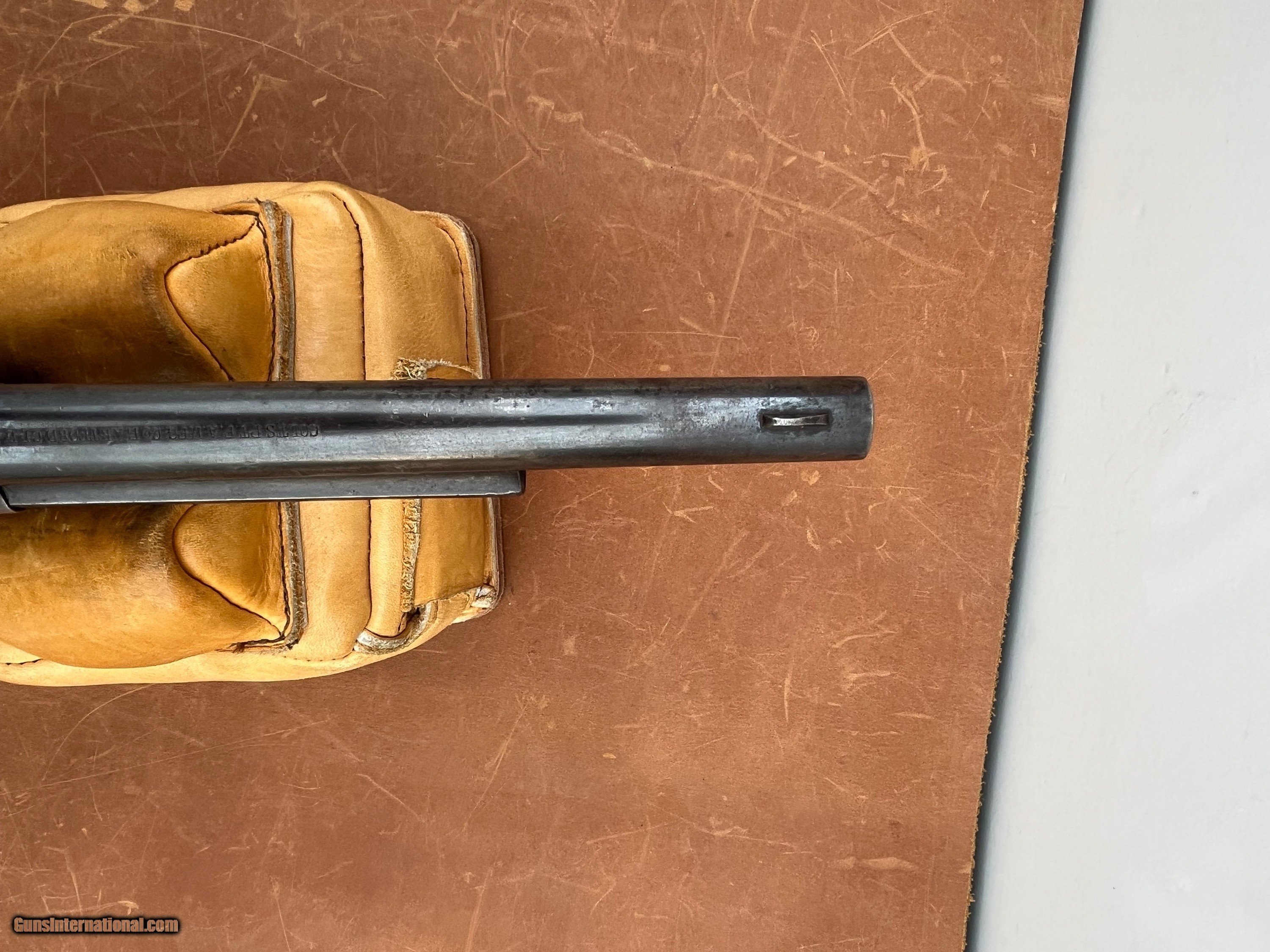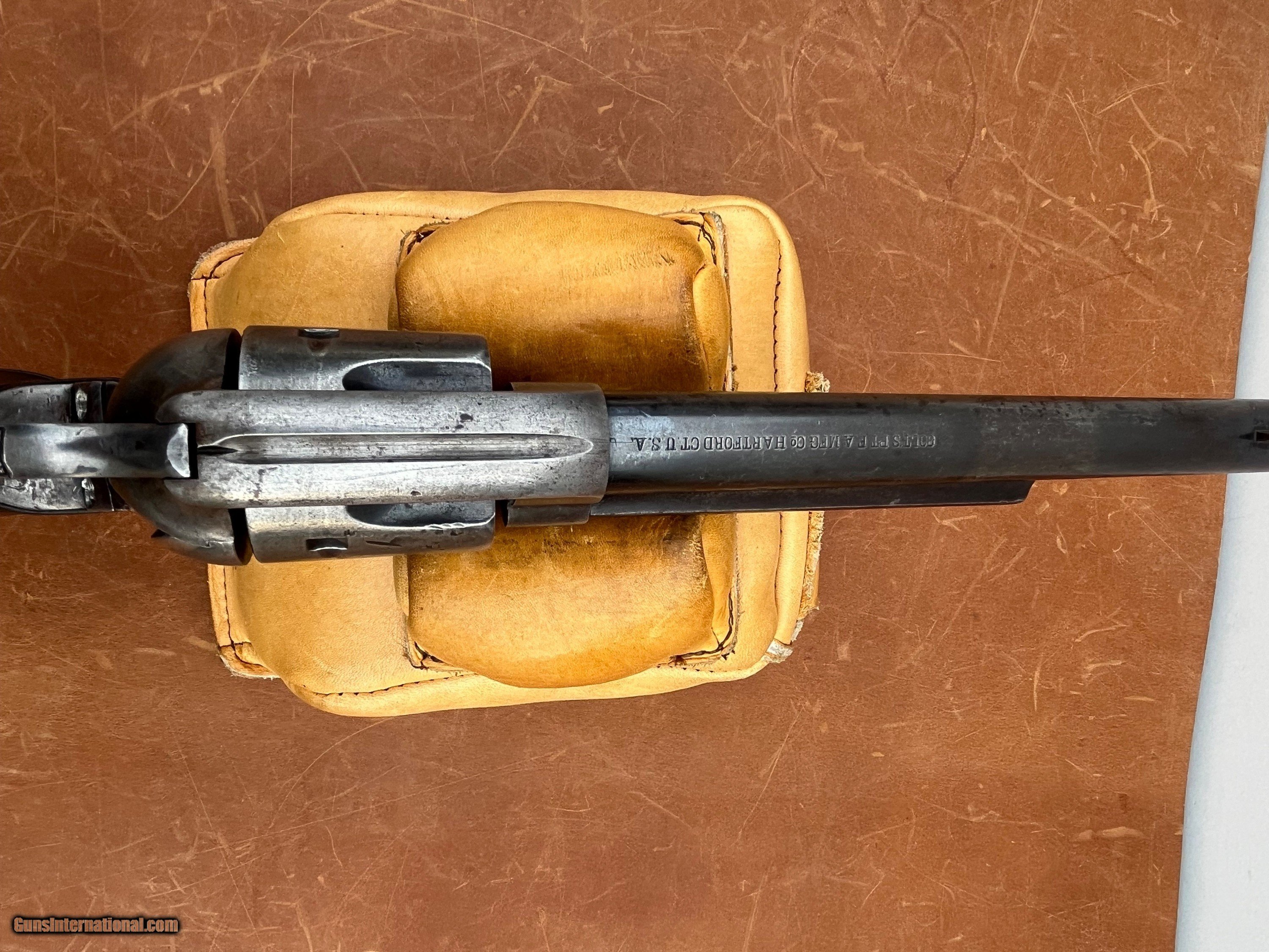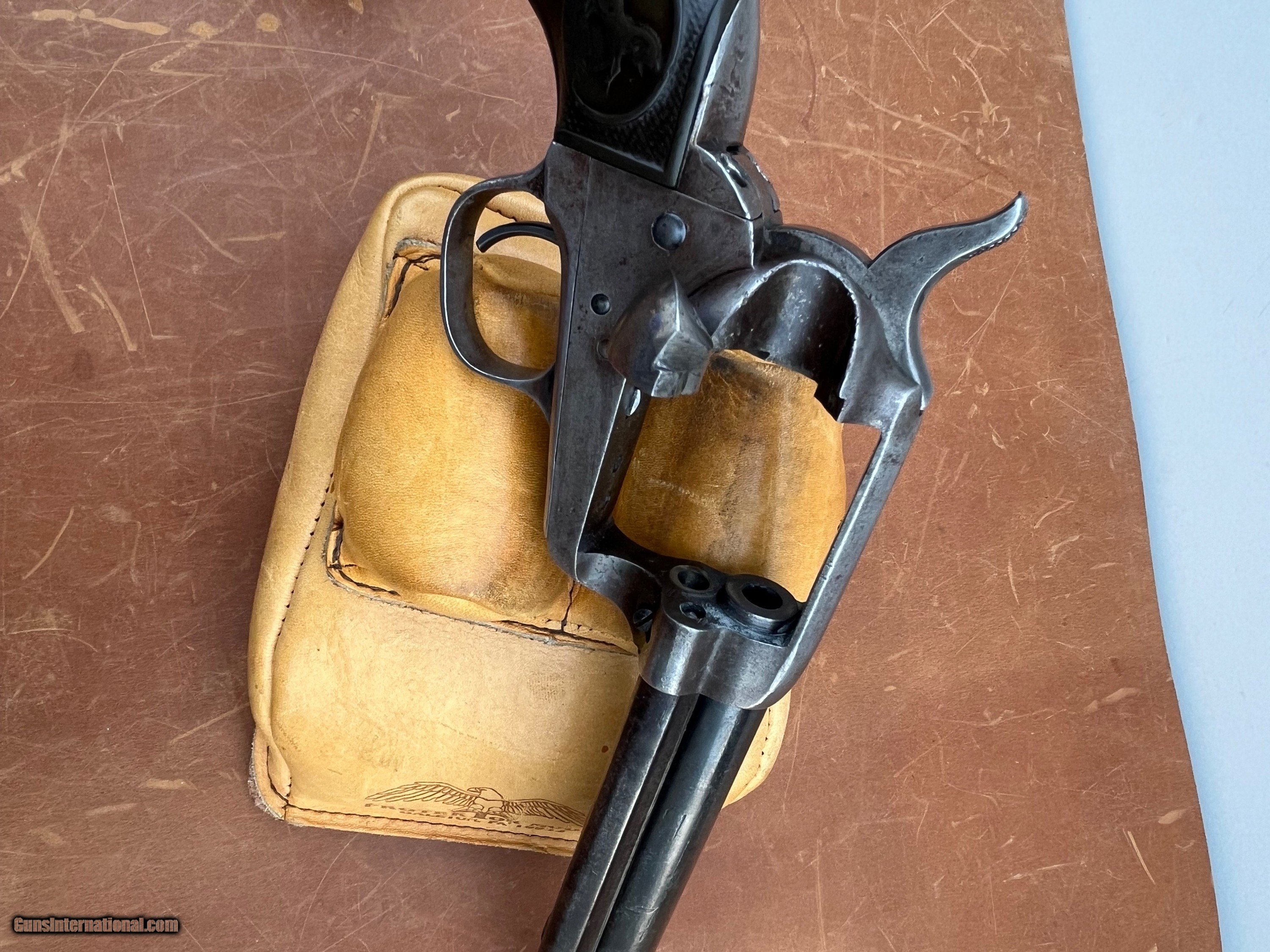 Description: Early Colt 7-1/2" Single Action Army Revolver. Unaltered and well worn. Americana at its best. This revolver has lived! Original hard rubber grips. Clicks are a little weak but everything turns and functions as it should. A great starter for a first- first gen. Pictures are the best description. Glad to answer any questions and add pictures All reasonable offers considered! I will only ship where and to whom its legal. C&R ok. $2250 shipped OBO SOLD Curio/Relic: Yes Rifle Caliber: .32-20 Winchester Manufacturer: Colt Model: 1873 Barrel Length: 7.5 |