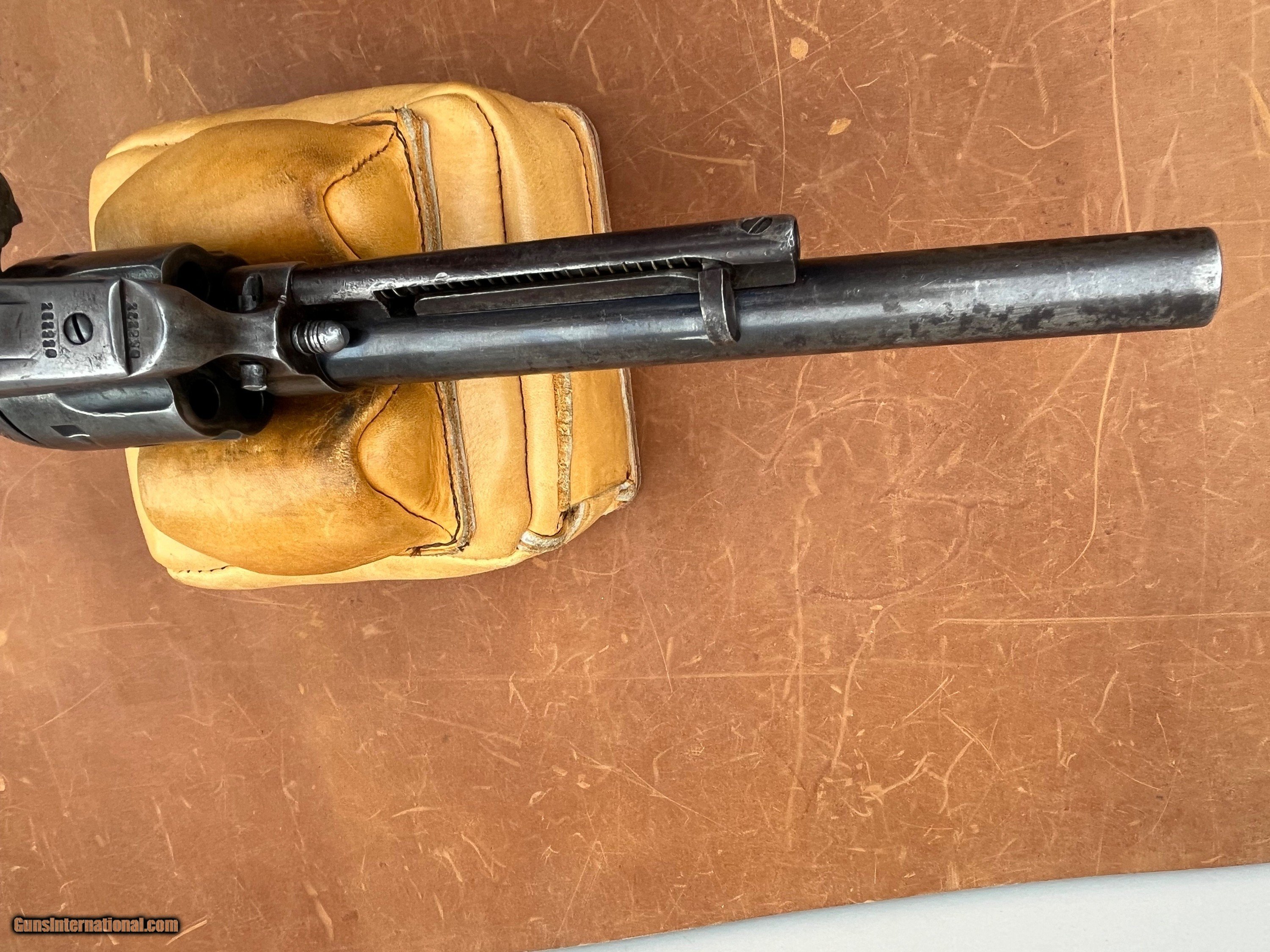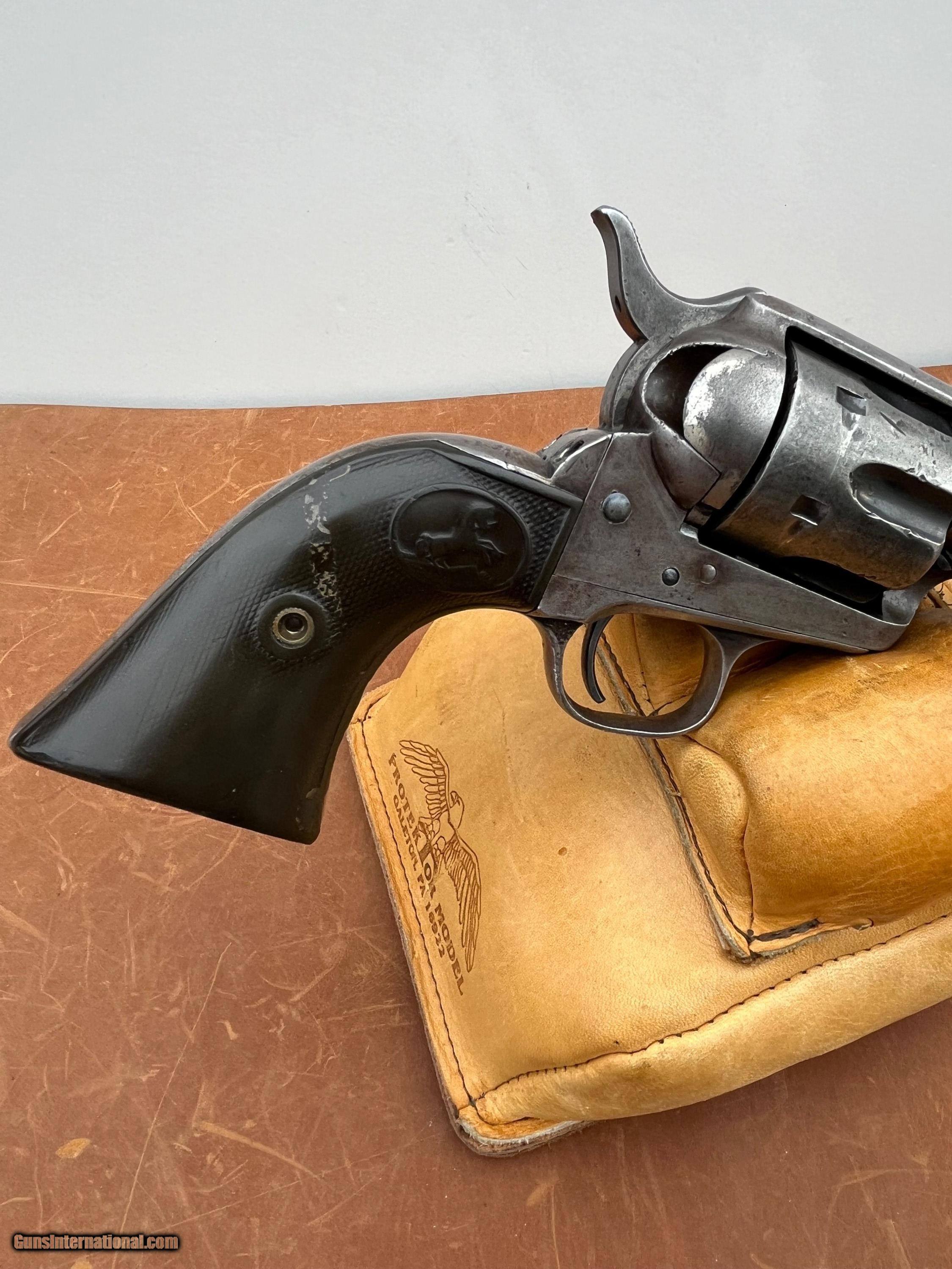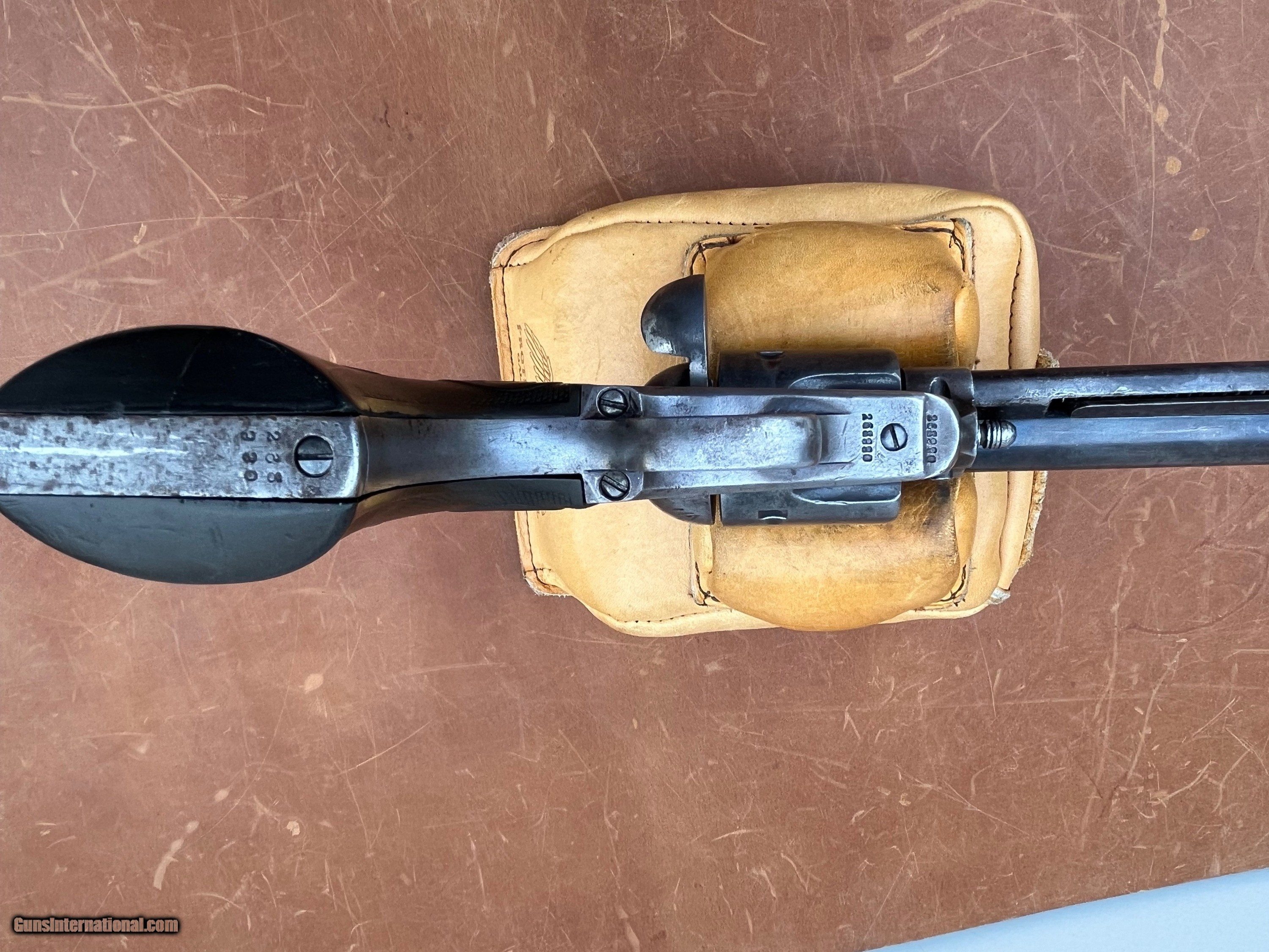 Description: Early Colt 7-1/2" Single Action Army Revolver. Unaltered and well worn. Americana at its best. This revolver has lived! Original hard rubber grips. Clicks are a little weak but everything turns and functions as it should. A great starter for a first- first gen. Pictures are the best description. Glad to answer any questions and add pictures All reasonable offers considered! I will only ship where and to whom its legal. C&R ok. $2250 shipped OBO SOLD Curio/Relic: Yes Rifle Caliber: .32-20 Winchester Manufacturer: Colt Model: 1873 Barrel Length: 7.5 |