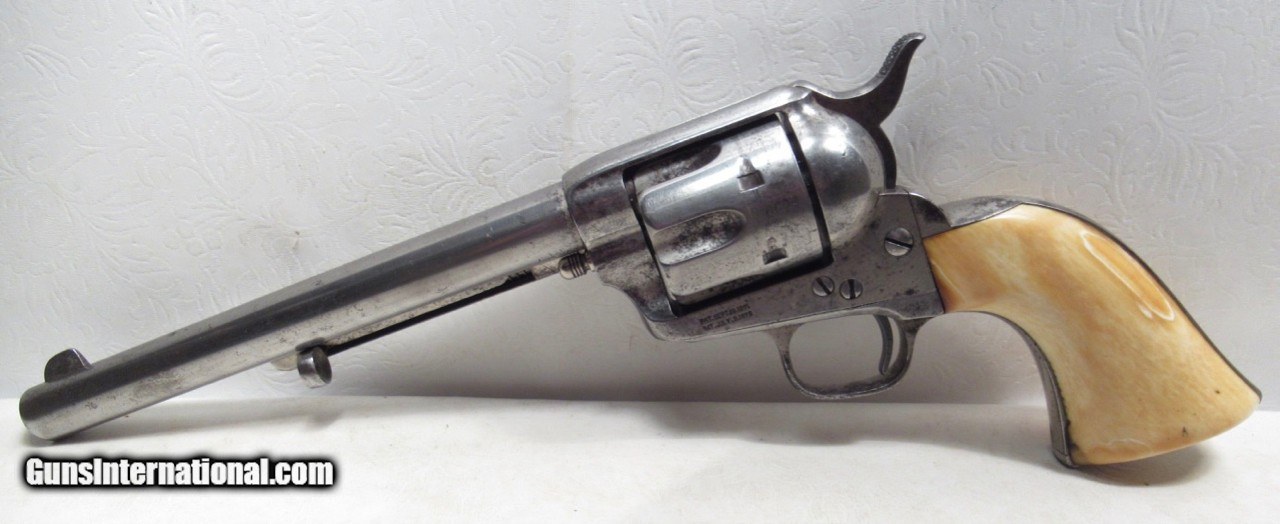 NICE ANTIQUE COLT S.A.A. 45 REVOLVER from COLLECTING TEXAS – IVORY GRIPS – 7 1/2” BARREL – NICKEL FINISH