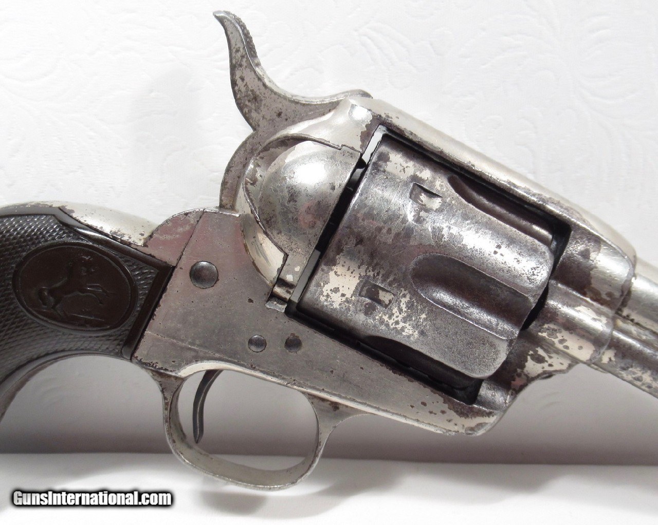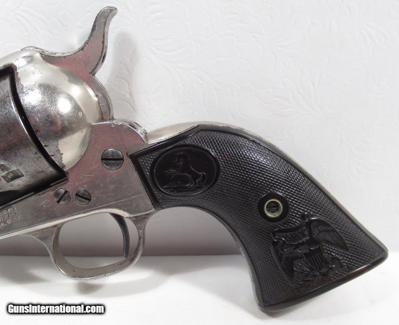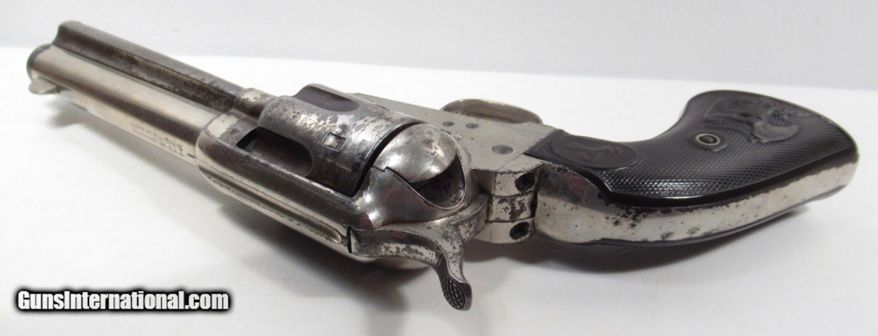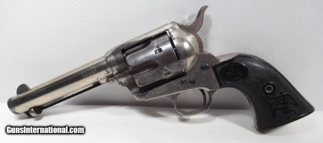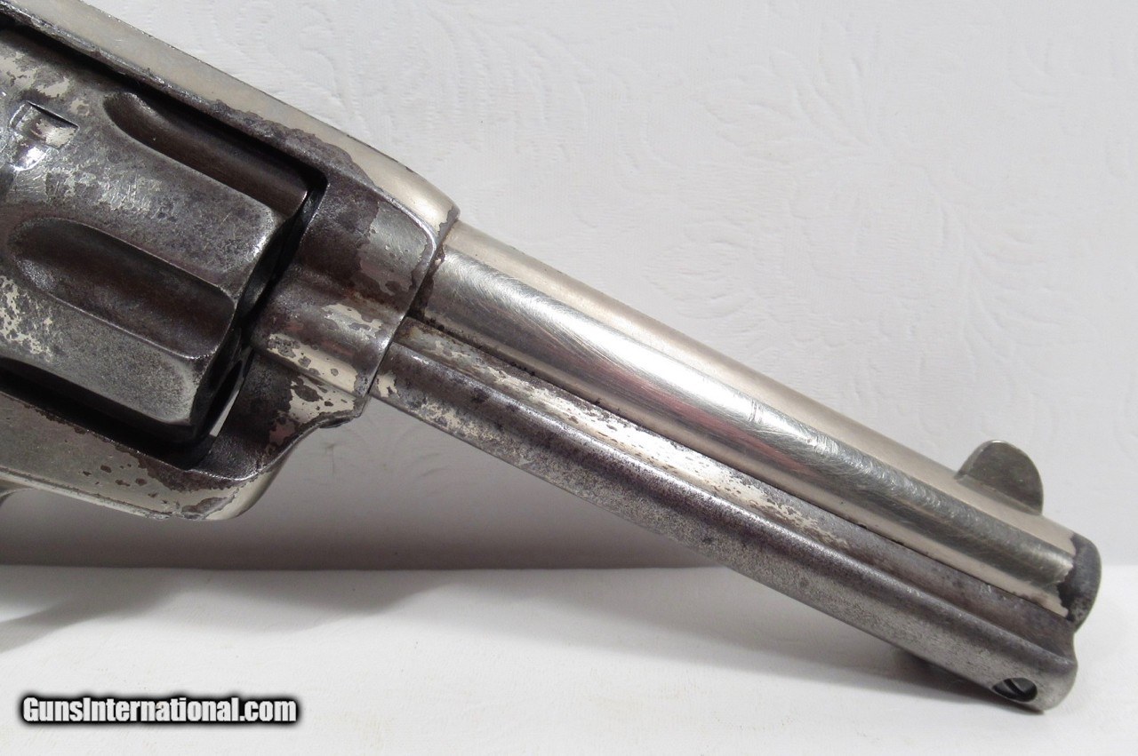 Description: Colt Single Action Army Revolver; Serial No. 133853; 45 Cal. with 4 ¾” Barrel and Nickel Finish; Shipped to Colt Distributor Simmons Hardware, St. Louis, Missouri on April 14, 1890; All Matching Numbers and 100% Correct and Original; Good Amount of Original Nickel Present; Good Original Colt Hard Rubber Eagle Grips; PERFECT ACTION and Very Strong Bore with moderate frosting; Really Good 131 Year-Old Colt out of New Mexico; See All Photos for Condition; No Texts; Call (254)541-5765 or Email Only; PERSONAL PROPERTY of Harold Wieser; Price: $4,975 + $45 S&H Via USPS PRIORITY MAIL; Payment Address: Harold Wieser - 1466 U.S. Hwy 77 - Rosebud, TX 76570; SEND PAYMENTS VIA USPS PRIORITY MAIL; BEWARE of SCAMS!!! – DO NOT SEND MONEY or CORRESPONDENTS ELECTRONICALLY UNLESS YOU HAVE SPOKEN to HAROLD WIESER FIRST! 254-541-5765 SOLD Antique: Yes Manufacturer: Colt Model: 1873 Serial Number: 133853 |