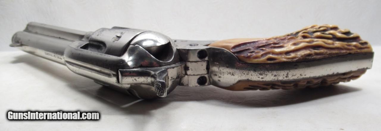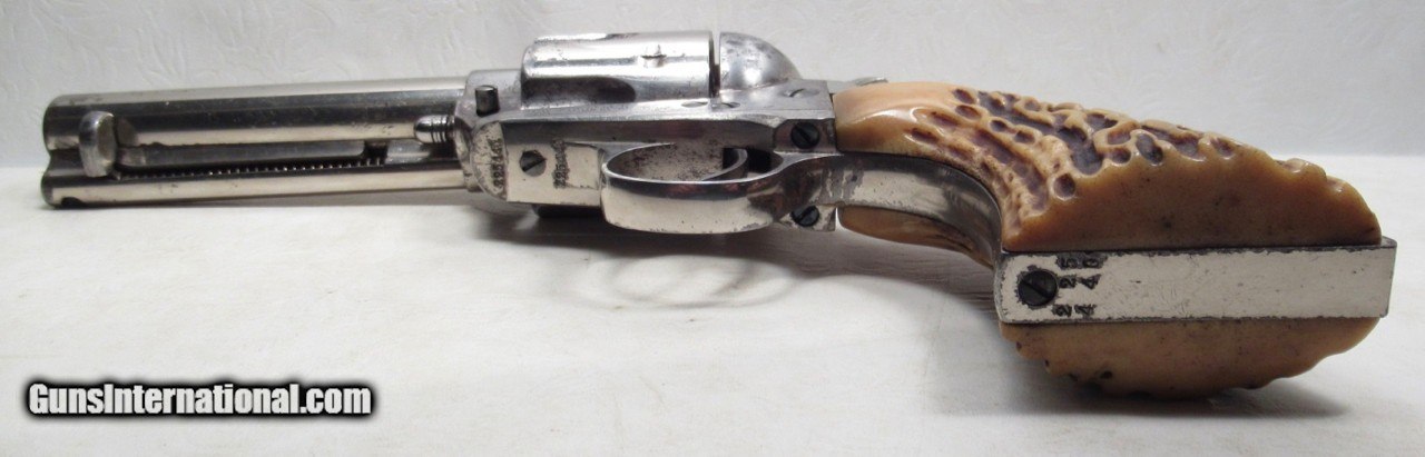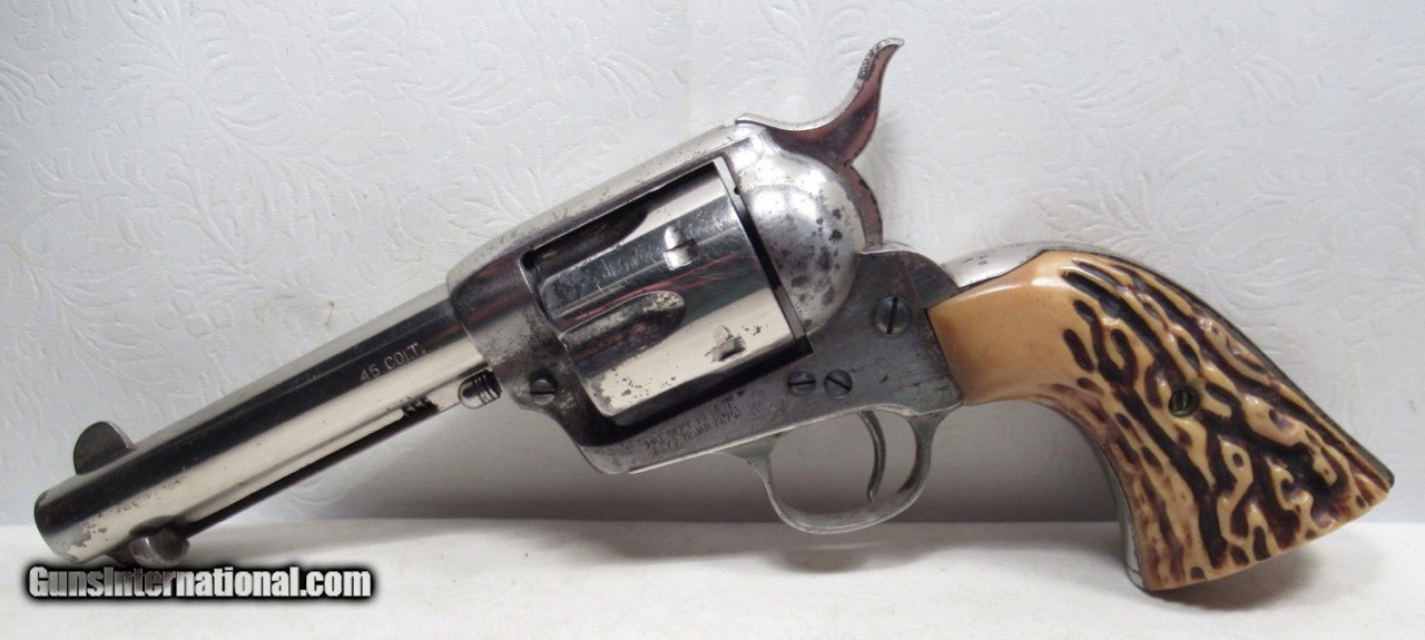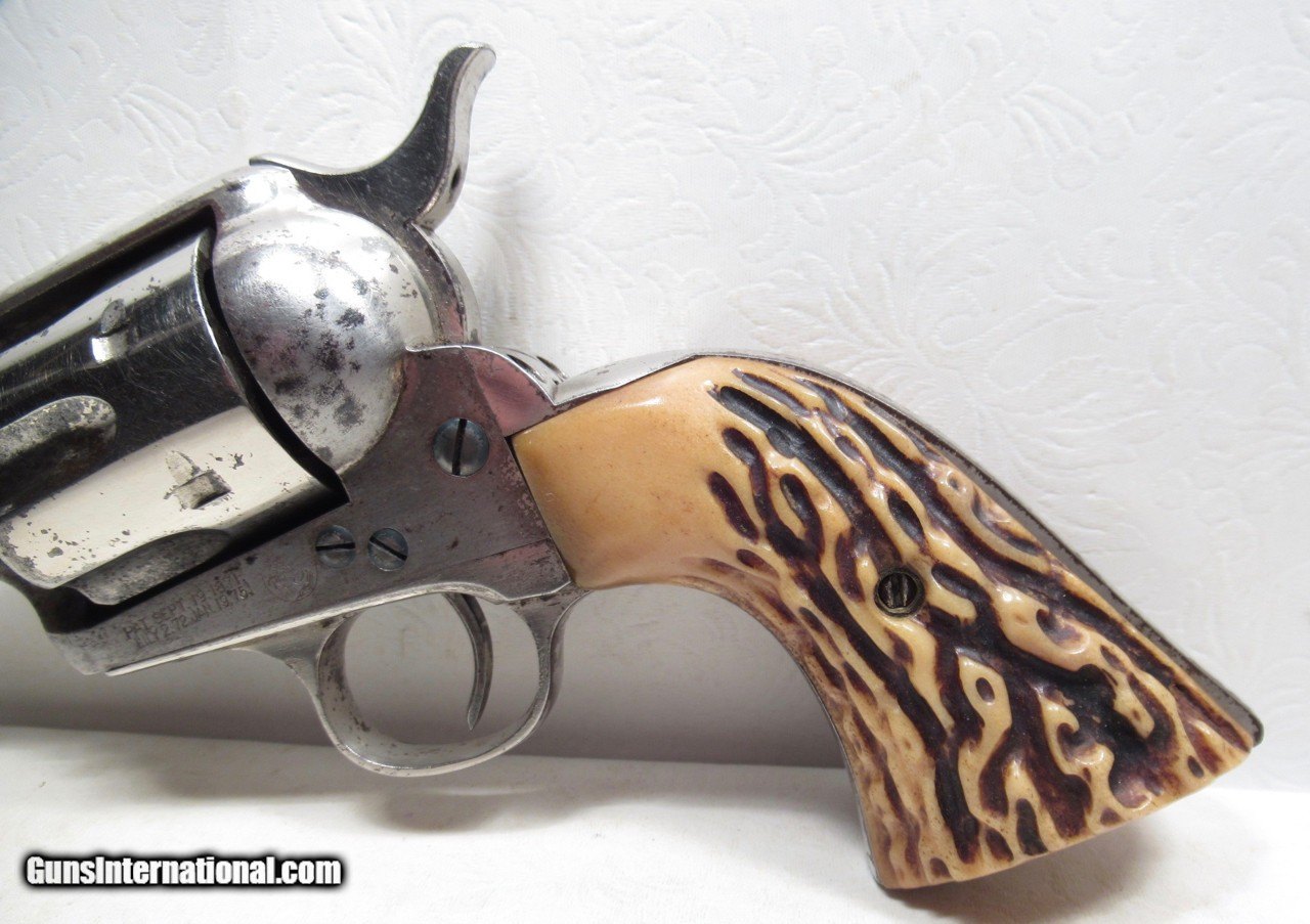 NICE COLT 45 SINGLE ACTION ARMY REVOLVER from COLLECTING TEXAS – NICKEL with NICE OLD JIG BONE GRIPS – MISSOURI SHIPPED in 1902