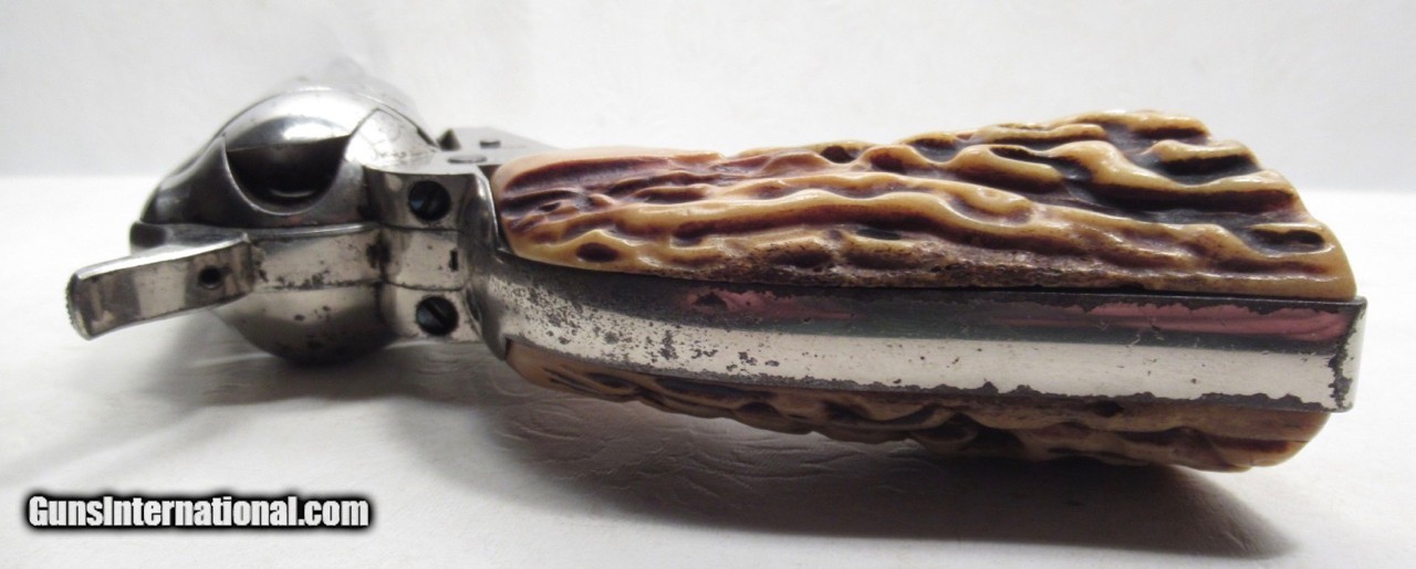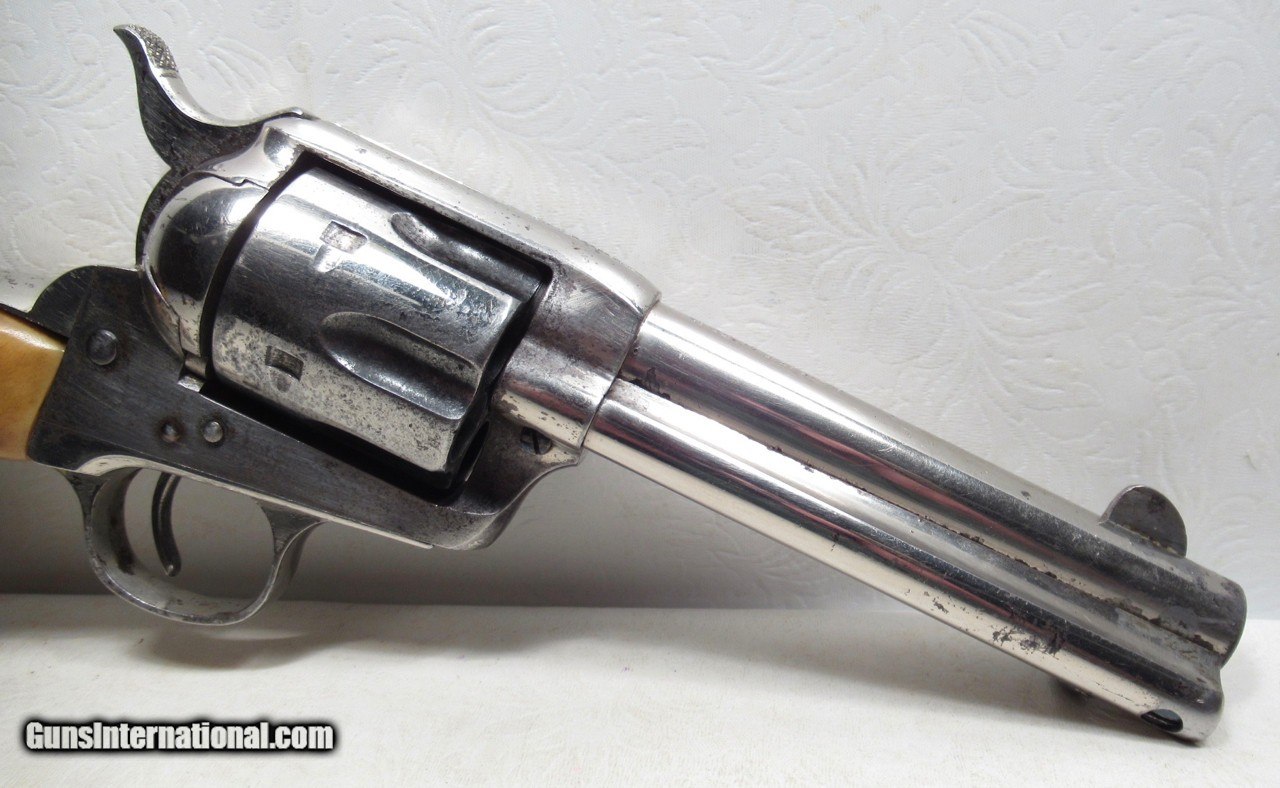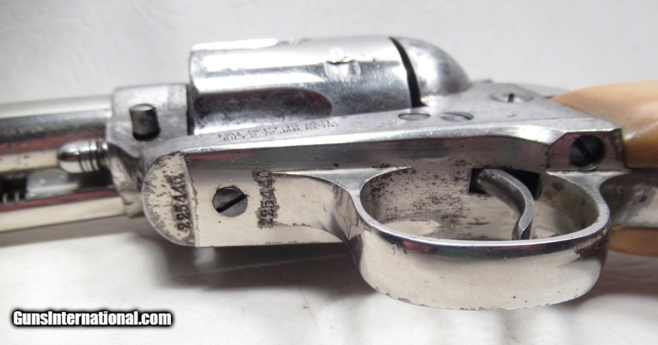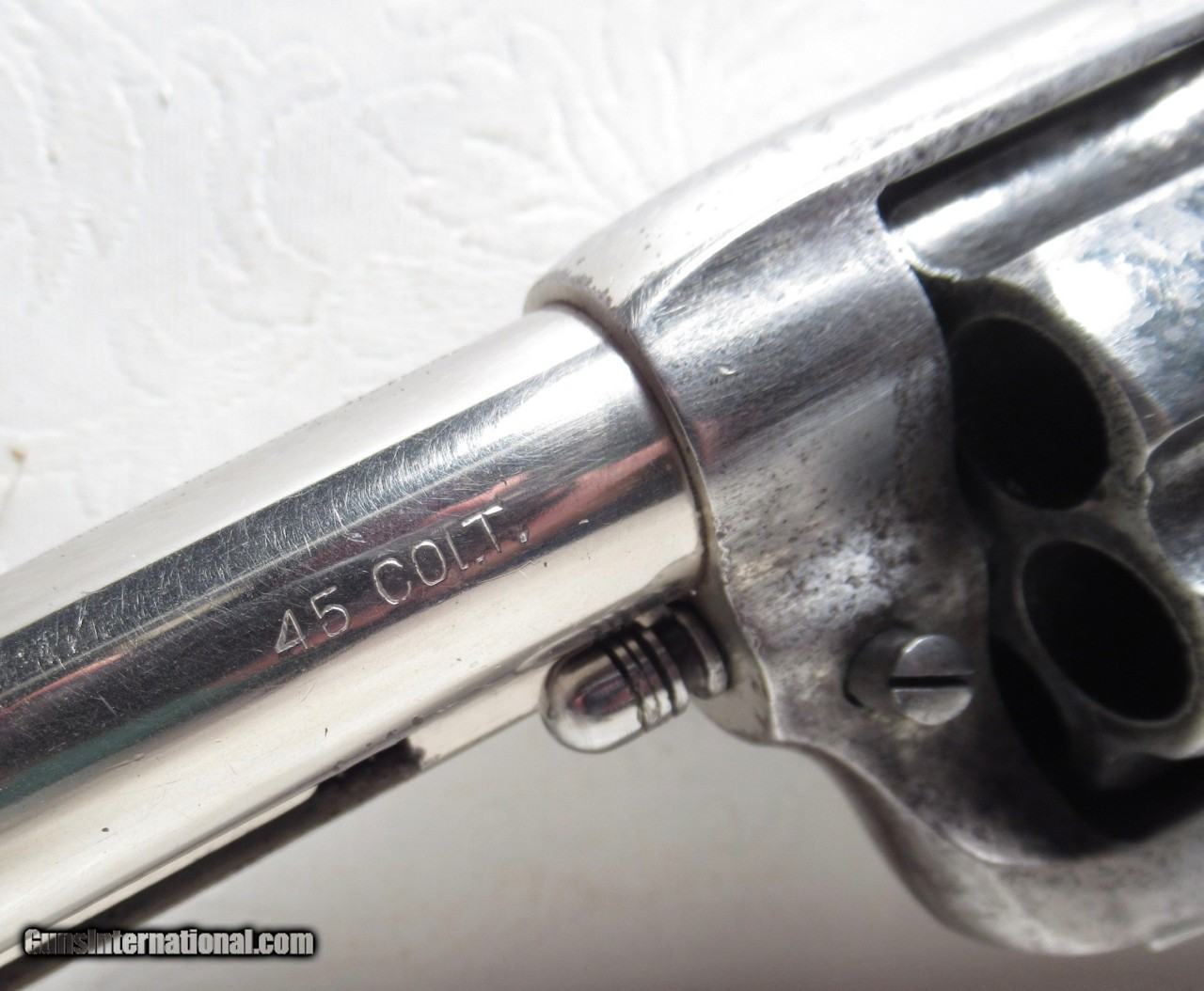 NICE COLT 45 SINGLE ACTION ARMY REVOLVER from COLLECTING TEXAS – NICKEL with NICE OLD JIG BONE GRIPS – MISSOURI SHIPPED in 1902