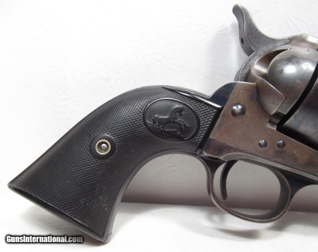 Description: SALE PENDING--Colt Single Action Army; Serial No. 212067; “COLT FRONTIER SIX SHOOTER” Roll Die (44-40) with 5 ½” Barrel and Blue/Case Hardened Metal Finish; Per Factory Letter – Shipped to Colt Distributor M. Hartley Company of New York, NY on July 16, 1901; Lots of Original Blue and Case Metal Finish Present; Really Nice Colt Hard Rubber Grips; Perfect Action and Bore; Perfect Blue Screws; Front Sight Slightly Lowered; Really Nice Colt SAA 44-40 that Surfaced in Abilene, Texas in 2018; See All Photos for Condition; No Texts; Call (254)541-5765 or Email Only; PERSONAL PROPERTY of Harold Wieser; Price: $6,475 + $45 S&H Via USPS PRIORITY MAIL; Payment Address: Harold Wieser - 1466 U.S. Hwy 77 - Rosebud, TX 76570; SEND PAYMENTS VIA USPS PRIORITY MAIL; BEWARE of SCAMS!!! – DO NOT SEND MONEY or CORRESPONDENTS ELECTRONICALLY UNLESS YOU HAVE SPOKEN to HAROLD WIESER FIRST! 254-541-5765 SOLD Manufacturer: Colt Model: 1873 Serial Number: 212067 |