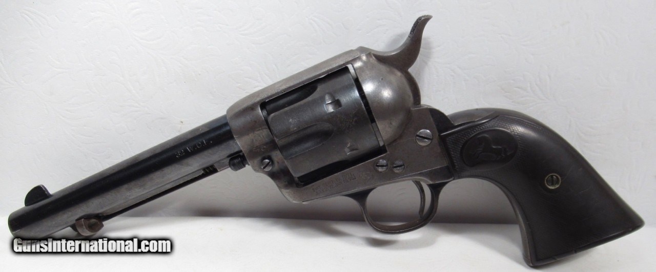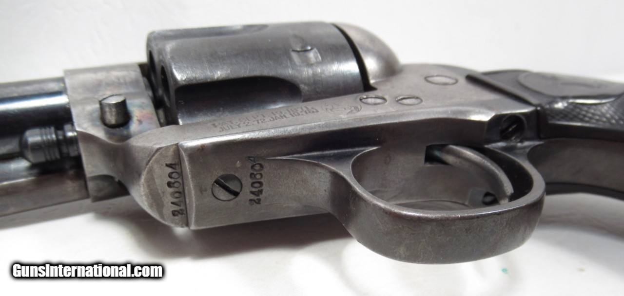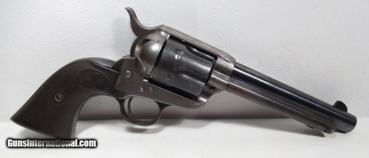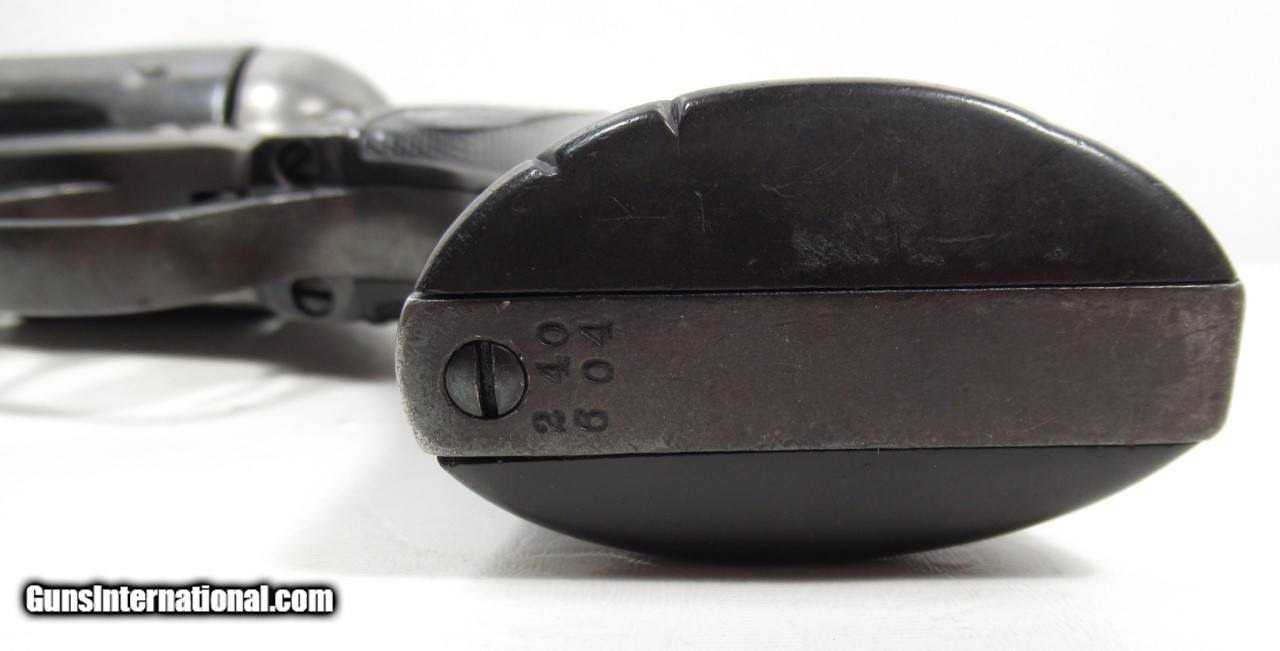 Description: SOLD--Colt Single Action Army; Serial No. 240604; Made 1903; 5 ½” Barrel; Blue Finish; 32 W.C.F. Caliber (32/20); Colt Record’s Indicate a 7 ½” Barrel; Most of the Original Metal Finish Remains; Good Original Colt Hard Rubber Grips with 2 Notches on Left Grip and Markings on Inside of Left Grip (See Photos); Perfect Action and Like New Bore; Nice 118 Year-Old Colt Single Action Revolver; See All Photos for Condition; No Texts. Call or Email Only; PERSONAL PROPERTY of Harold Wieser; Price: $1,975 $45 S&H Via FedEx Express; PLEASE DO NOT SEND PAYMENT THROUGH U.S. POSTAL SERVICE; Price includes insured shipping; return policy: three days inspection from the date the item is received; full refund of shipping both ways ONLY IF THE ITEM IS MISREPRESENTED. SOLD Manufacturer: Colt Model: 1873 Serial Number: 240604 |