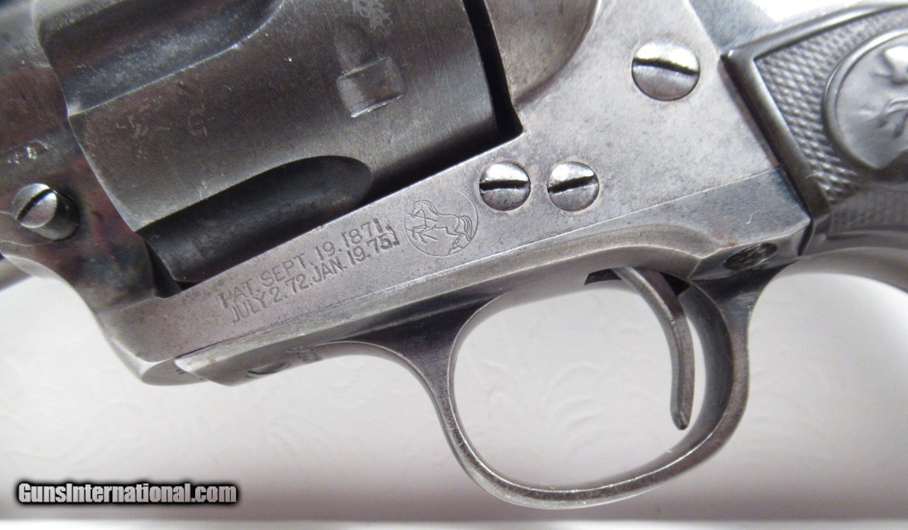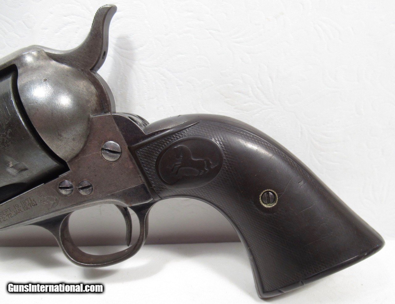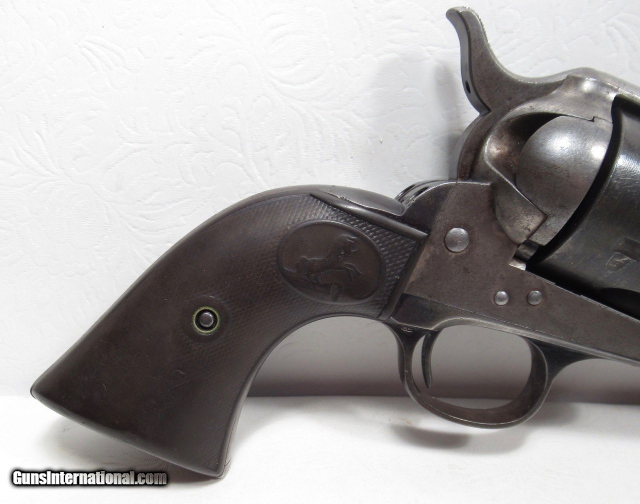 Description: SOLD--Colt Single Action Army; Serial No. 240604; Made 1903; 5 ½” Barrel; Blue Finish; 32 W.C.F. Caliber (32/20); Colt Record’s Indicate a 7 ½” Barrel; Most of the Original Metal Finish Remains; Good Original Colt Hard Rubber Grips with 2 Notches on Left Grip and Markings on Inside of Left Grip (See Photos); Perfect Action and Like New Bore; Nice 118 Year-Old Colt Single Action Revolver; See All Photos for Condition; No Texts. Call or Email Only; PERSONAL PROPERTY of Harold Wieser; Price: $1,975 $45 S&H Via FedEx Express; PLEASE DO NOT SEND PAYMENT THROUGH U.S. POSTAL SERVICE; Price includes insured shipping; return policy: three days inspection from the date the item is received; full refund of shipping both ways ONLY IF THE ITEM IS MISREPRESENTED. SOLD Manufacturer: Colt Model: 1873 Serial Number: 240604 |