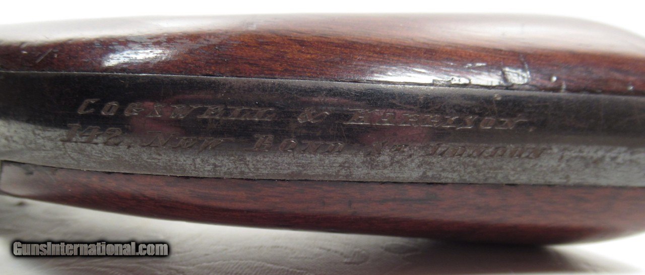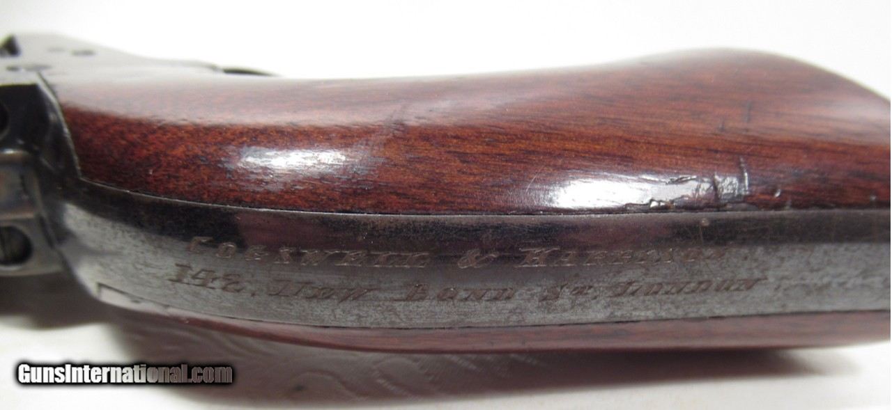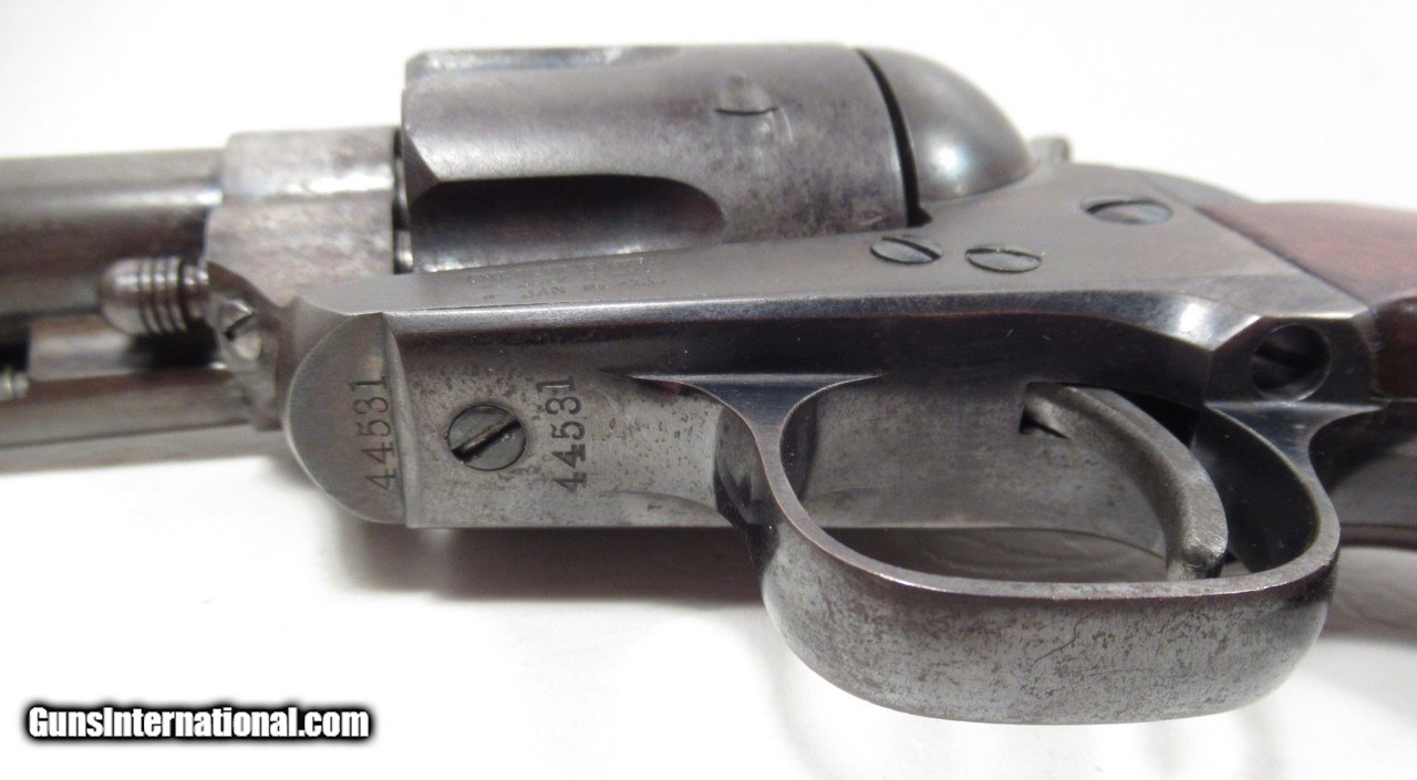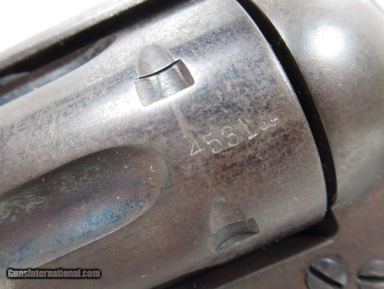 Description: Colt Single Action Army; Serial No. 44531; Per Factory Letter Included: .45 Eley Caliber with Blue Finish and Special Letter Notation “Short Barrel”; Shipped to Colt’s London, England Agency on April 4, 1878; Engraved on Backstrap “Cogswell & Harrison 142 New Bond St. London”; Note on Cogswell & Harrison Records Indicates Possession of CSA44531 in Their Inventory on April 22, 1879; 100% Correct and Matching; Lots of Original Metal Finish Remains; All Original Varnish on Grips; Perfect Action and Bore; Very Rare 144 Year-Old London, England Shipped Colt S.A.A. Revolver; See All Photos for Condition; No Texts; Call (254)541-5765 or Email Only; PERSONAL PROPERTY of Harold Wieser; Price: $17,775 + $45 S&H Via USPS PRIORITY MAIL; Payment Address: Harold Wieser - 1466 U.S. Hwy 77 - Rosebud, TX 76570; SEND PAYMENTS VIA USPS PRIORITY MAIL; BEWARE of SCAMS!!! – DO NOT SEND MONEY or CORRESPONDENTS ELECTRONICALLY UNLESS YOU HAVE SPOKEN to HAROLD WIESER FIRST! 254-541-5765 SOLD Antique: Yes Manufacturer: Colt Model: 1873 Serial Number: 44531 |