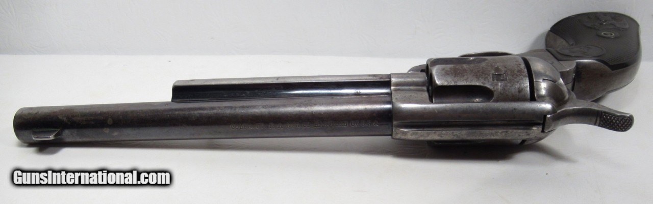 Description: SOLD--Colt Single Action Army; Serial No. 126453; According to Letter this is a .41 Caliber; Blue Finish; Rubber Grips and Rare 7 ½” Barrel and is Possibly in the First Shipment to Colt’s San Francisco Agency on May 31, 1888 (See Footnote on Factory Letter) Along with 4 Other Guns; This Colt was Purchased New by Albert Wetterer From Colt’s San Francisco Agency; This Fine Old Colt was Passed Down Through His Family (See Family Letter/Envelope); 100% Correct, Original, and Matching; Good Amount of Original Metal Finish Remains; Fine Original Eagle Hard Rubber Grips; Good Action with weak safety notch; Very Strong Bore with even frosting; Super Rare 133 Year-Old 7 ½” .41 Colt – Western Shipped and Still in Original Family; See All Photos for Condition; No Texts. Call or Email Only; PERSONAL PROPERTY of Harold Wieser; Price: $12,975 + $45 S&H Via FedEx Express; PLEASE DO NOT SEND PAYMENT THROUGH U.S. POSTAL SERVICE; Price includes insured shipping; return policy: three days inspection from the date the item is received; full refund of shipping both ways ONLY IF THE ITEM IS MISREPRESENTED. SOLD Antique: Yes Manufacturer: Colt Model: 1873 Serial Number: 126453 |